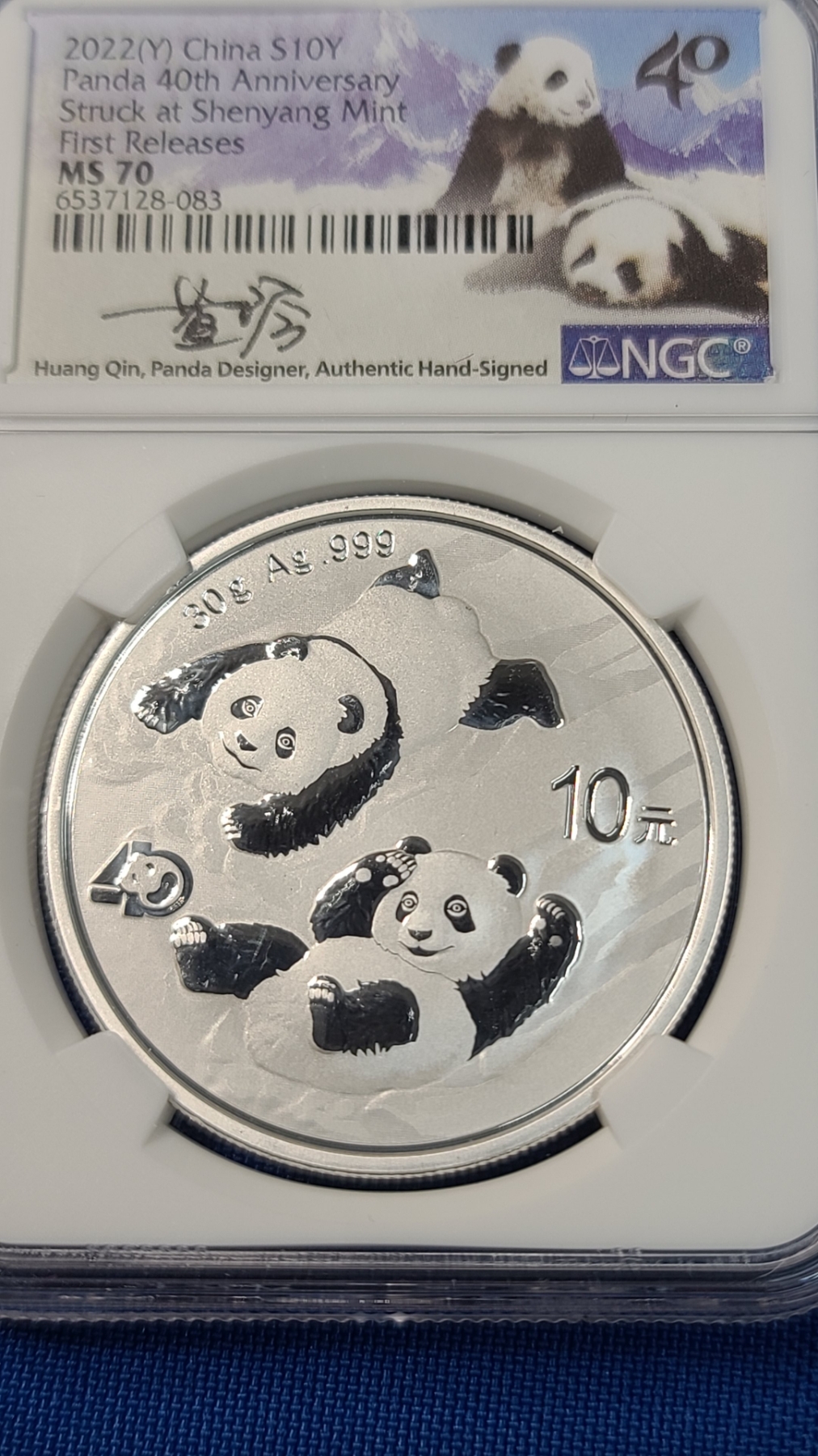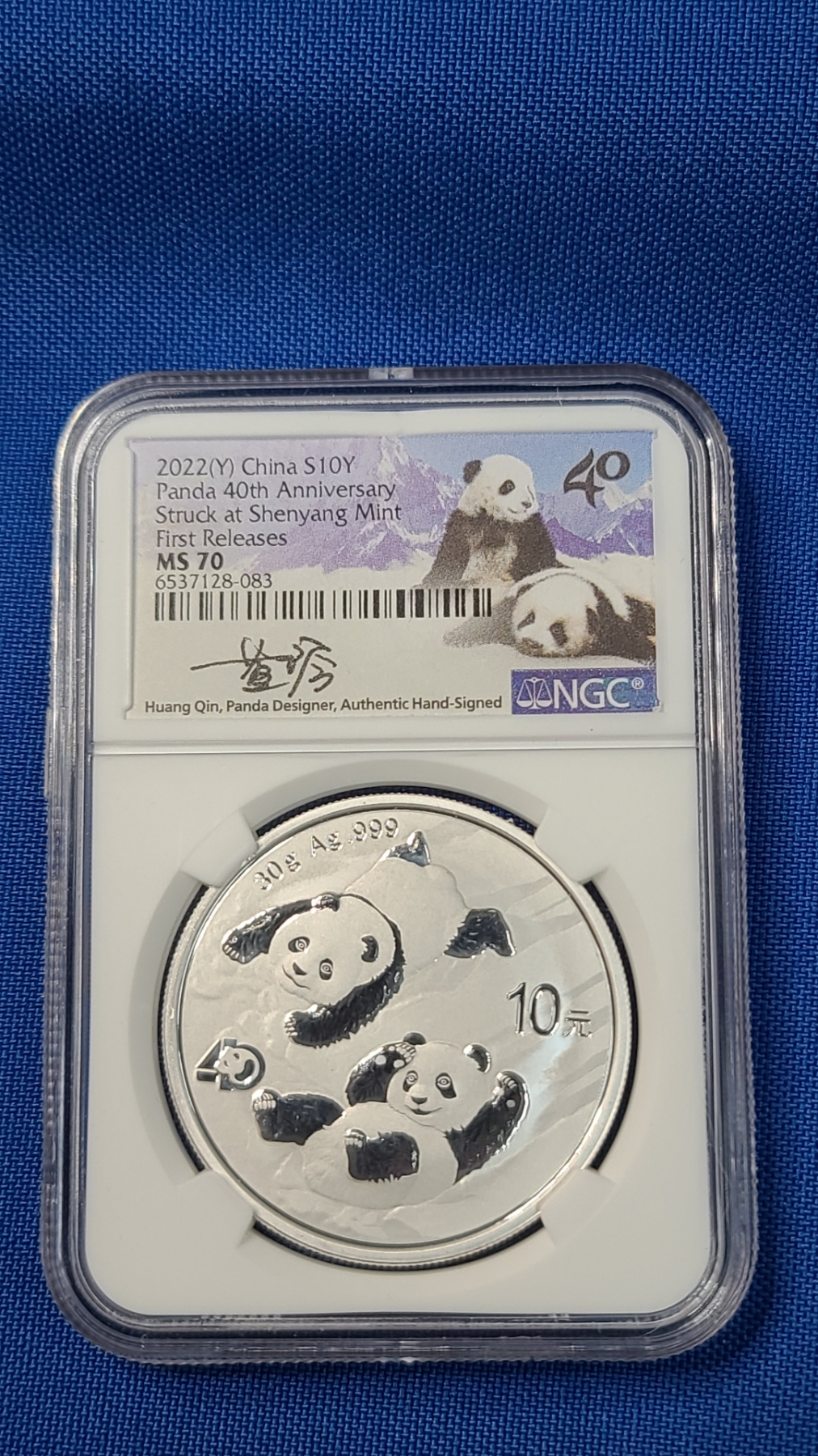 NGC MS70 2022-Y China 30 Gram Silver Panda 40th Anniversary - Struck at Shenyang Mint With Auto! Also Comes In China Panda Coin Series Collectors Box.