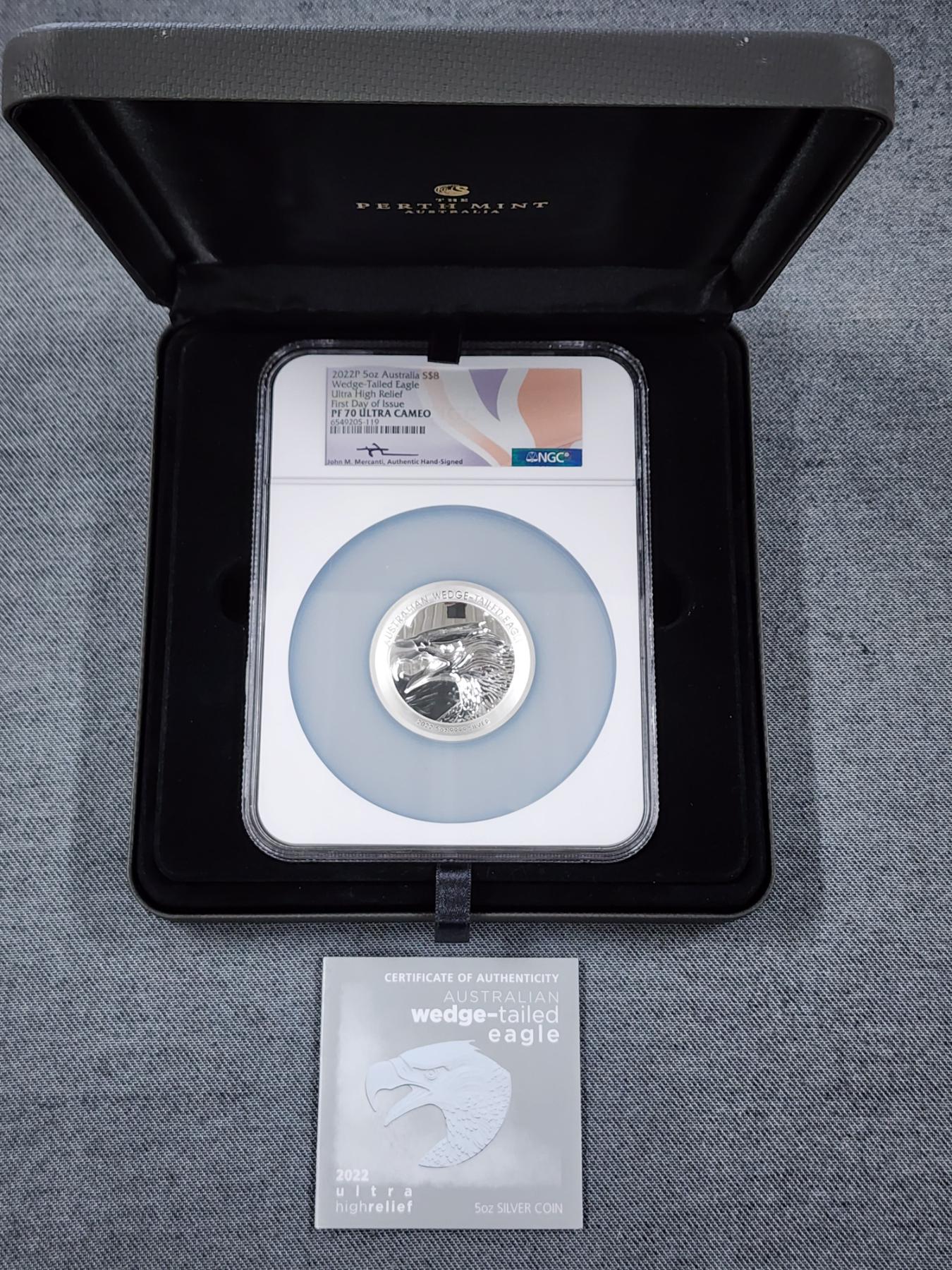 NGC PF70 Ultra Cameo 2022-P 5 Oz Silver Australia Wedge-Tailed Eagle Ultra High Relief Round