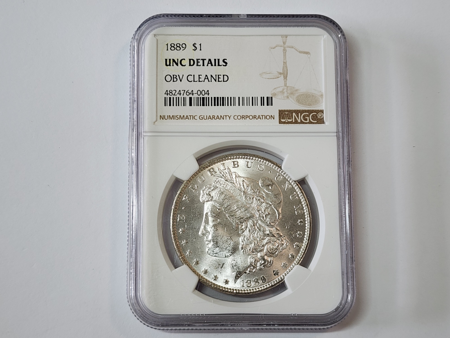 NGC UNC Details OBV Cleaned 1889 90% Silver Morgan Dollar
