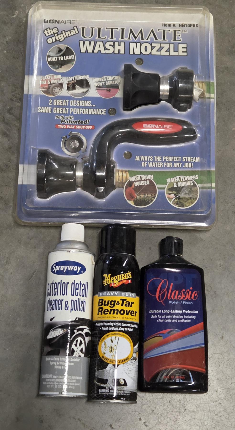 New! Auto Wash And Detail Items Including Wash Nozzle, Bug & Tar Remover, And Detail Spray