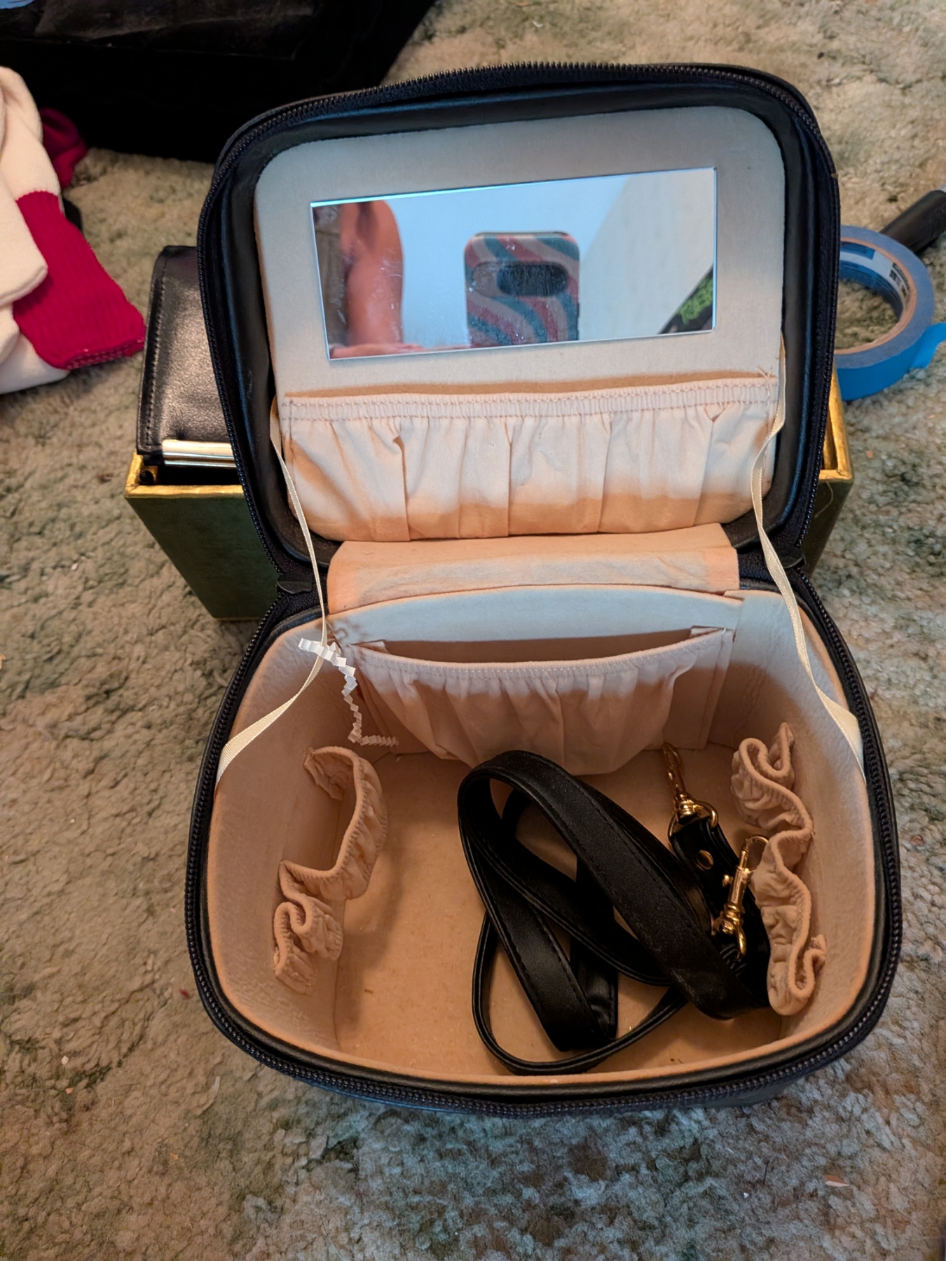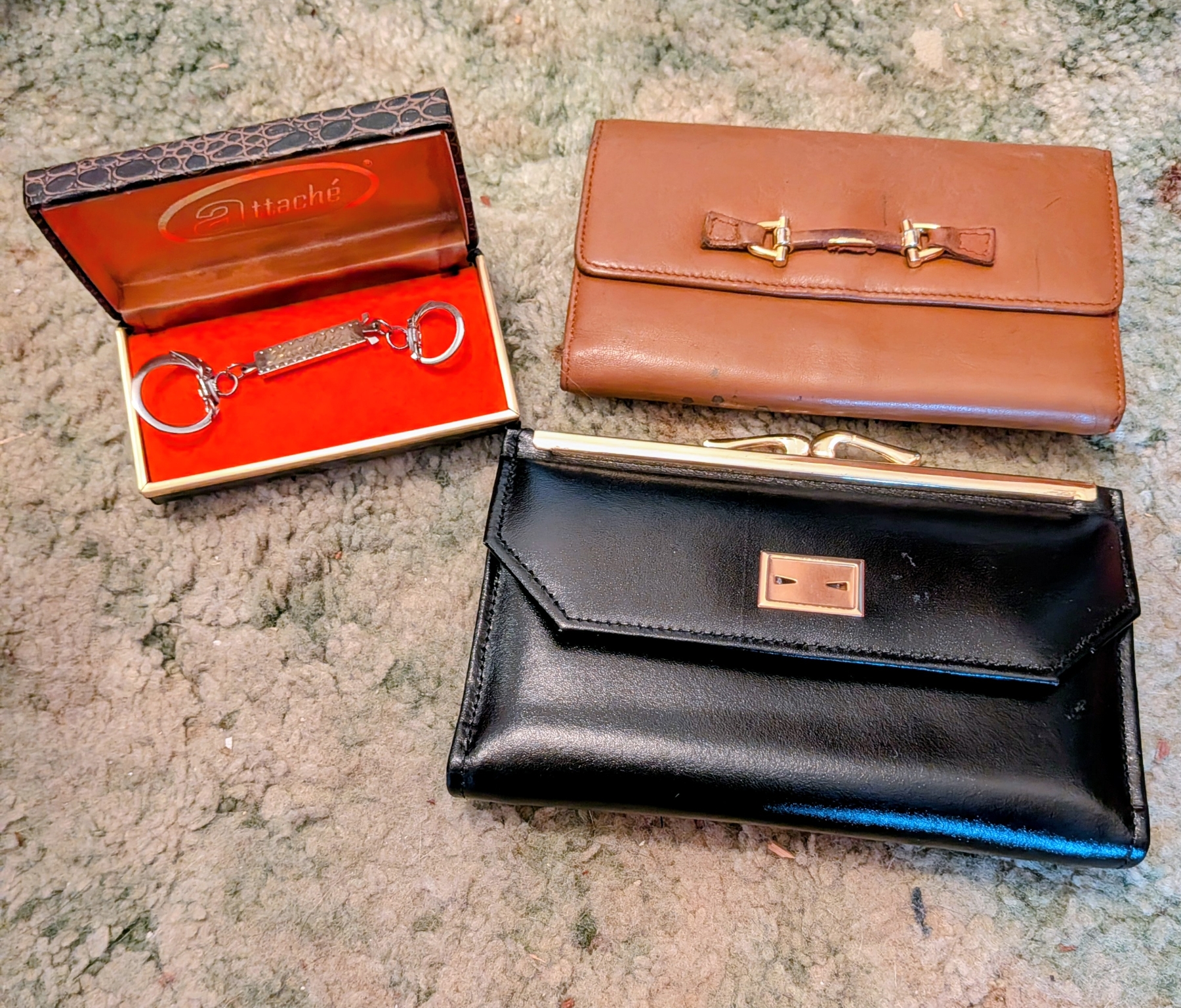 New Black Travel Case With Strap, 2 New Ladies Wallets, Seashell, And Small Glass Trinket Box
