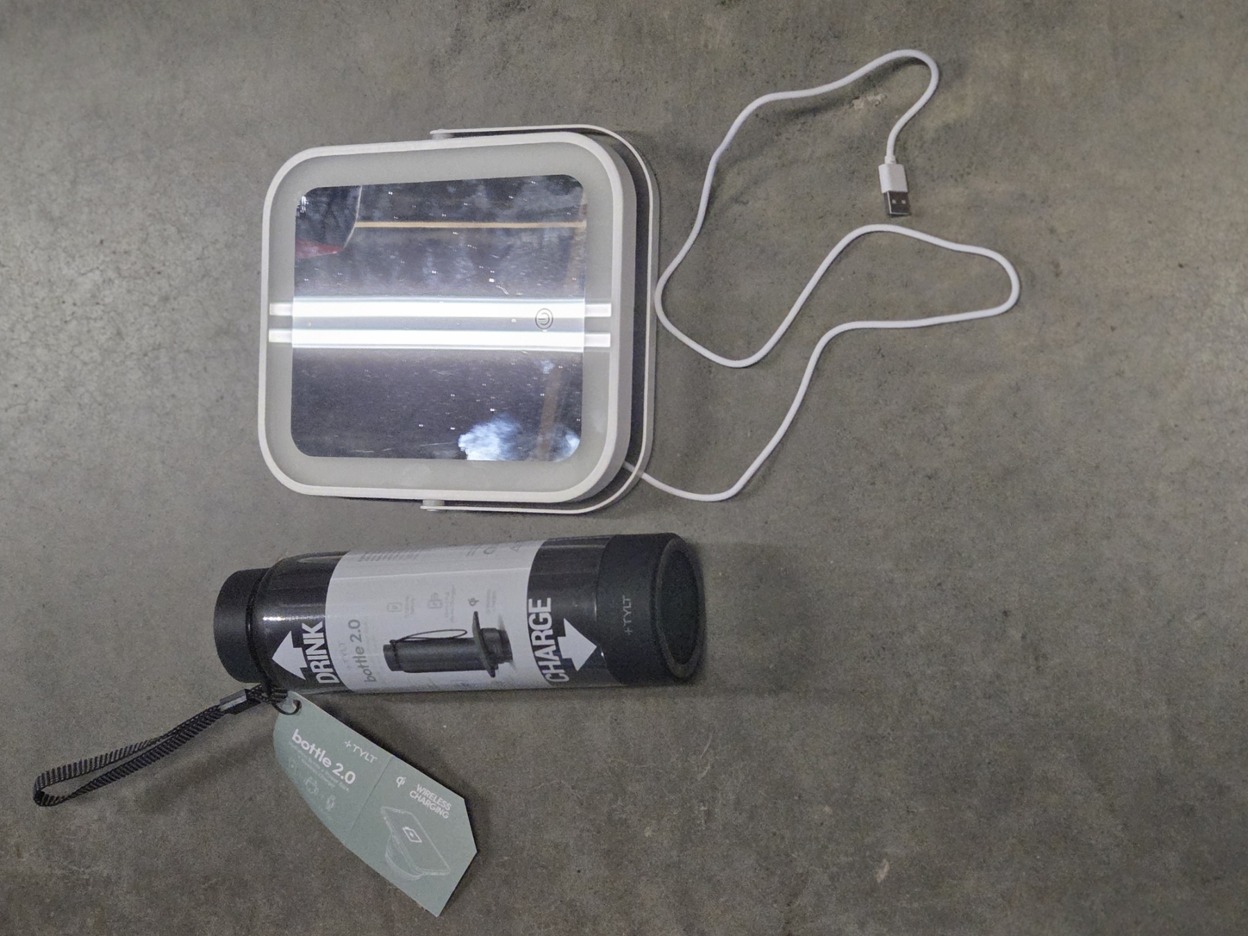 New Charger/Power Bank Beverage Bottle, & Type C Lighted Mirror