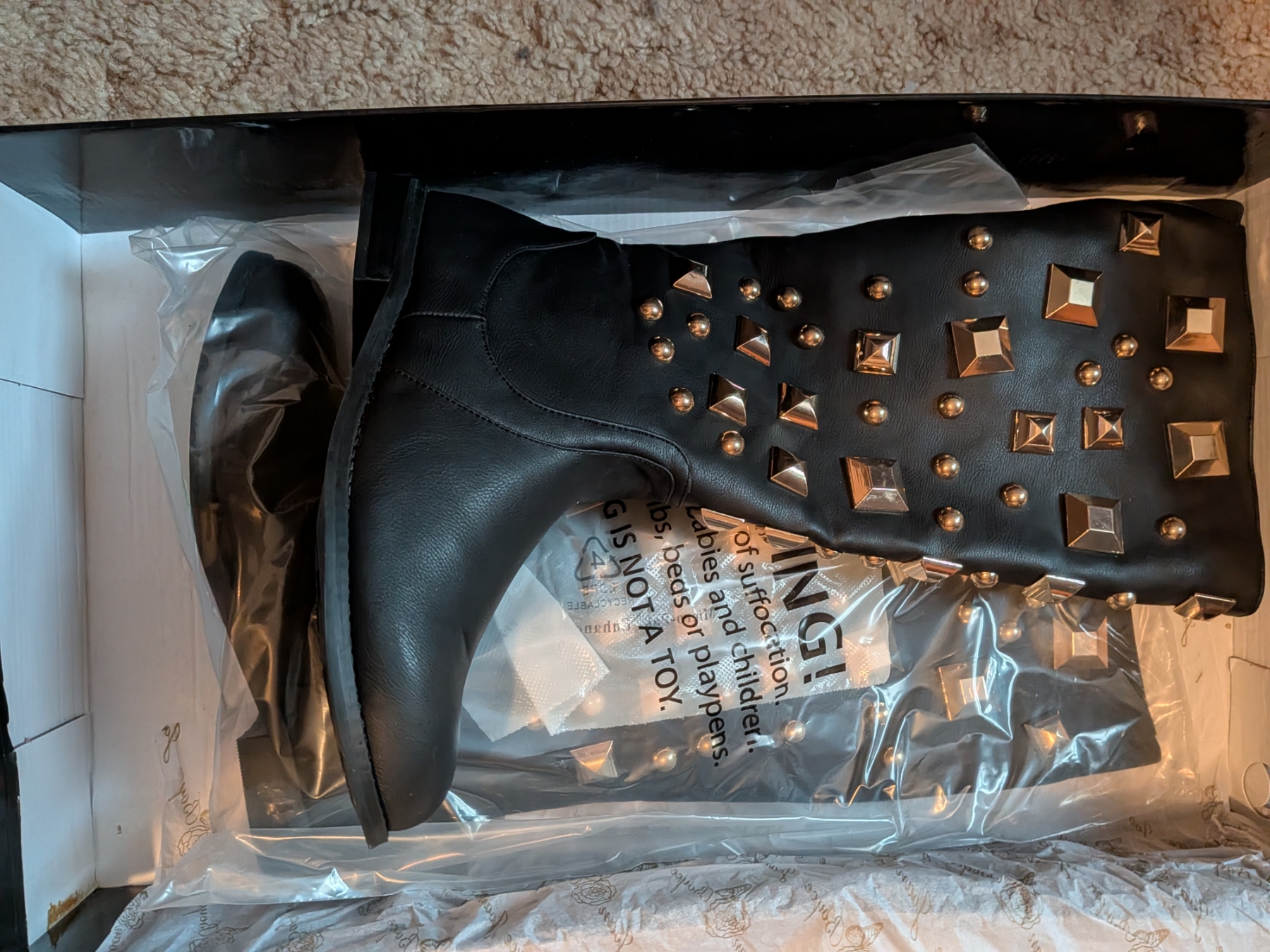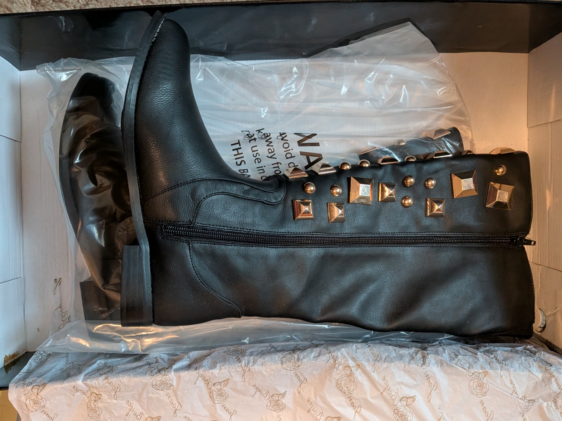 New In Box Black Size 7 Womans Boots With Gold Accents