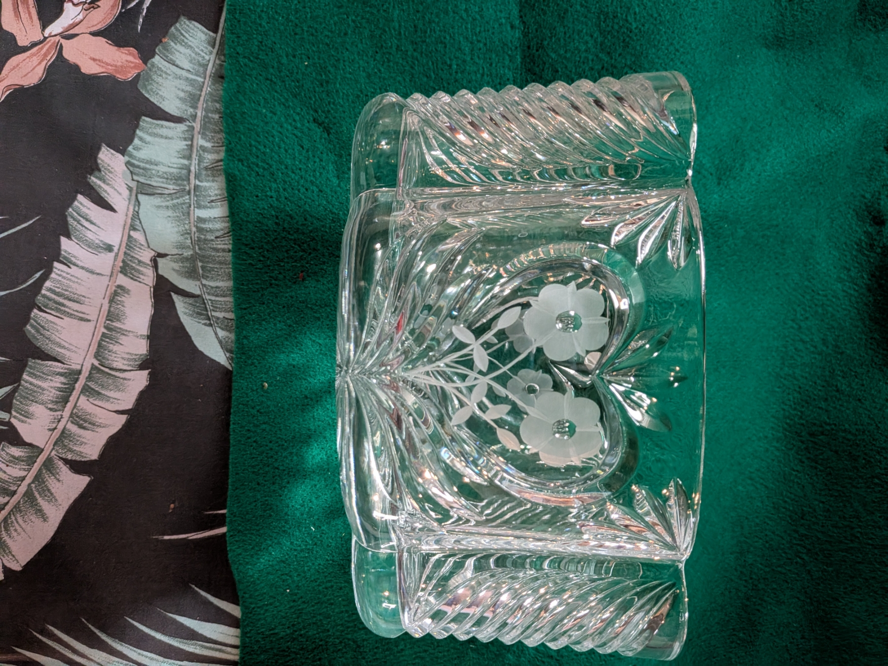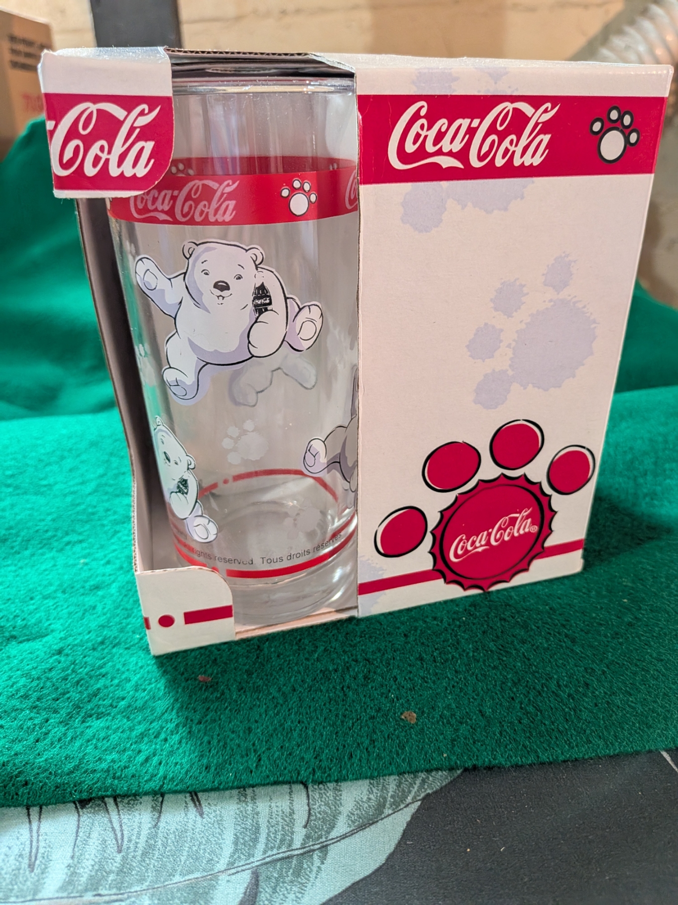 New In Box Coca Cola 4 Pack Of Glasses, New Pretty Crystal Bowl, New Crystal Candy Dish, And New Valentines Statue