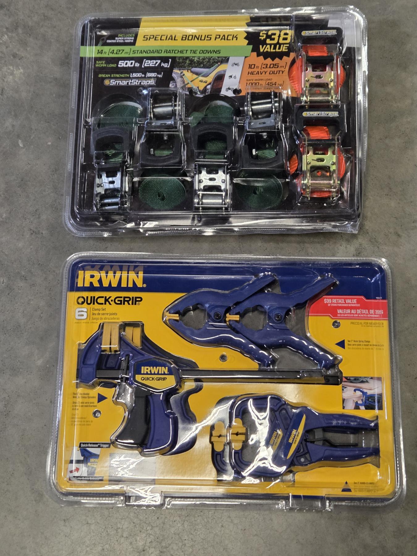 New Irwin Clamp Set And New Tie Down & Ratchet Strap Set