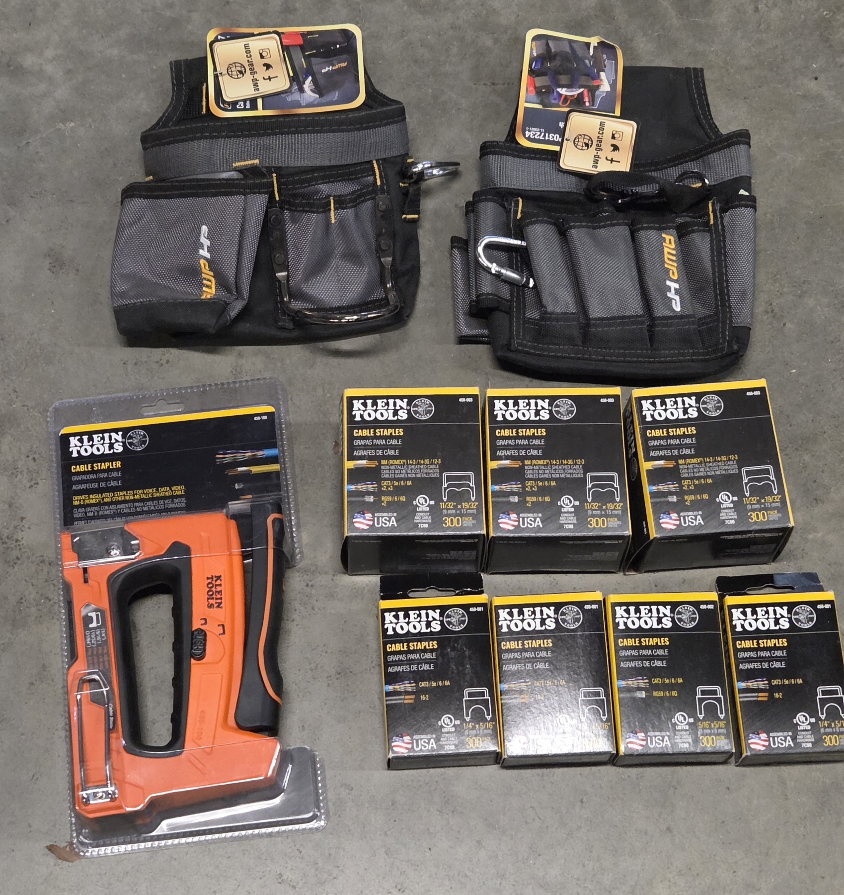 New! Klein Tools Cable Stapler, 7 Boxes Of Staples & 2 New Tool Pouches