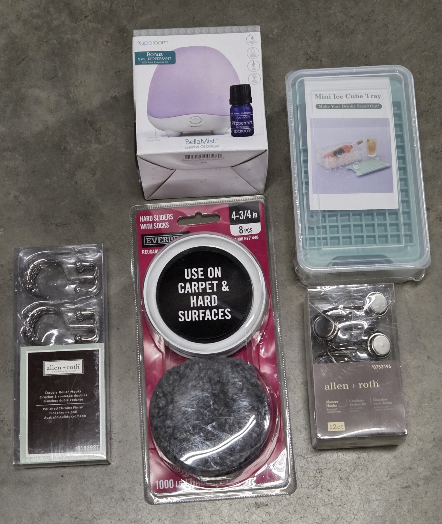 New - Mini Ice Trays, Furniture Movers, 2 Shower Curtain Hooks & Oil Diffuser With Oil!