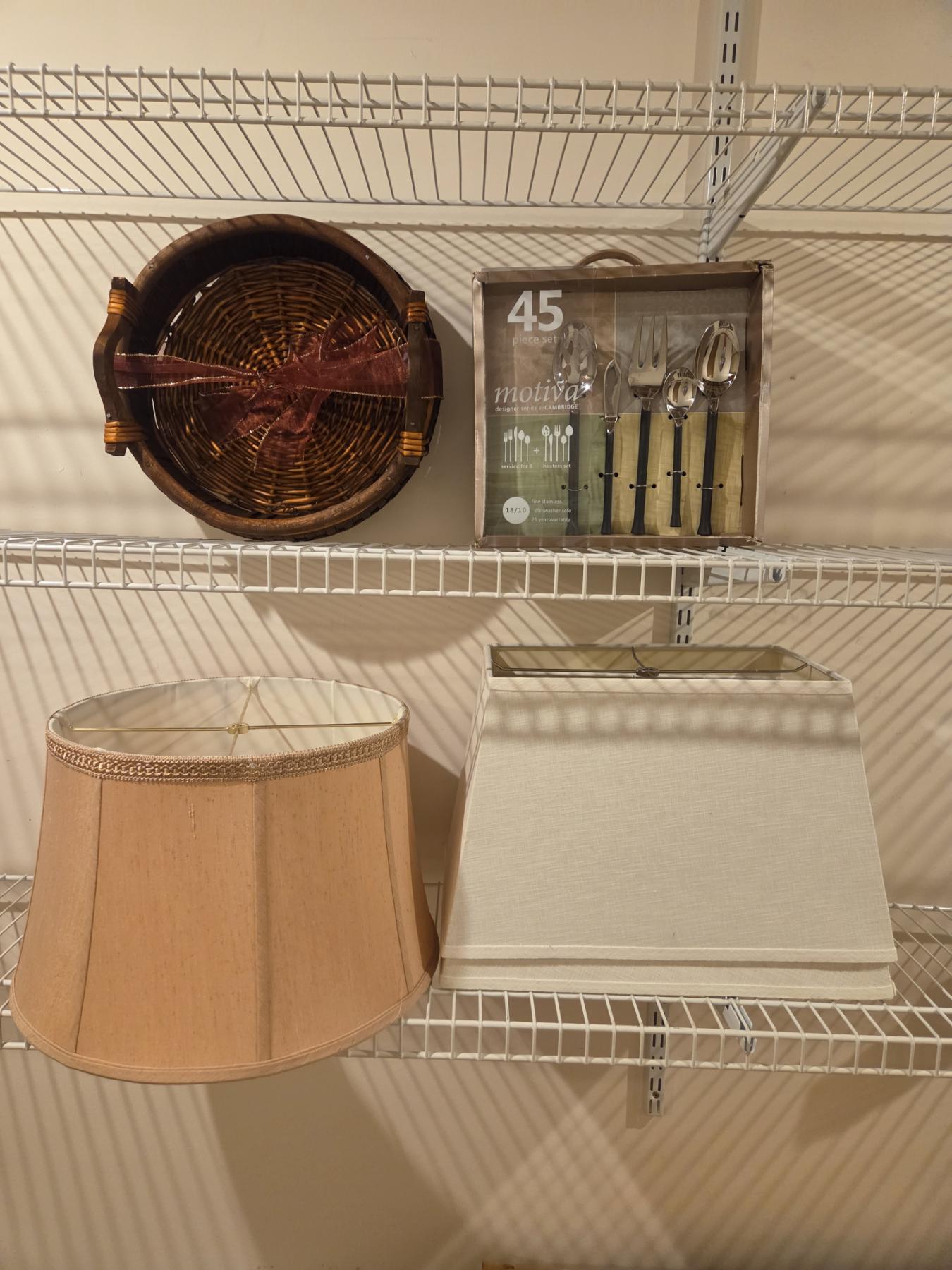 New Serving Set, 3 Like New Lamp Shades, Nice Decorative Basket