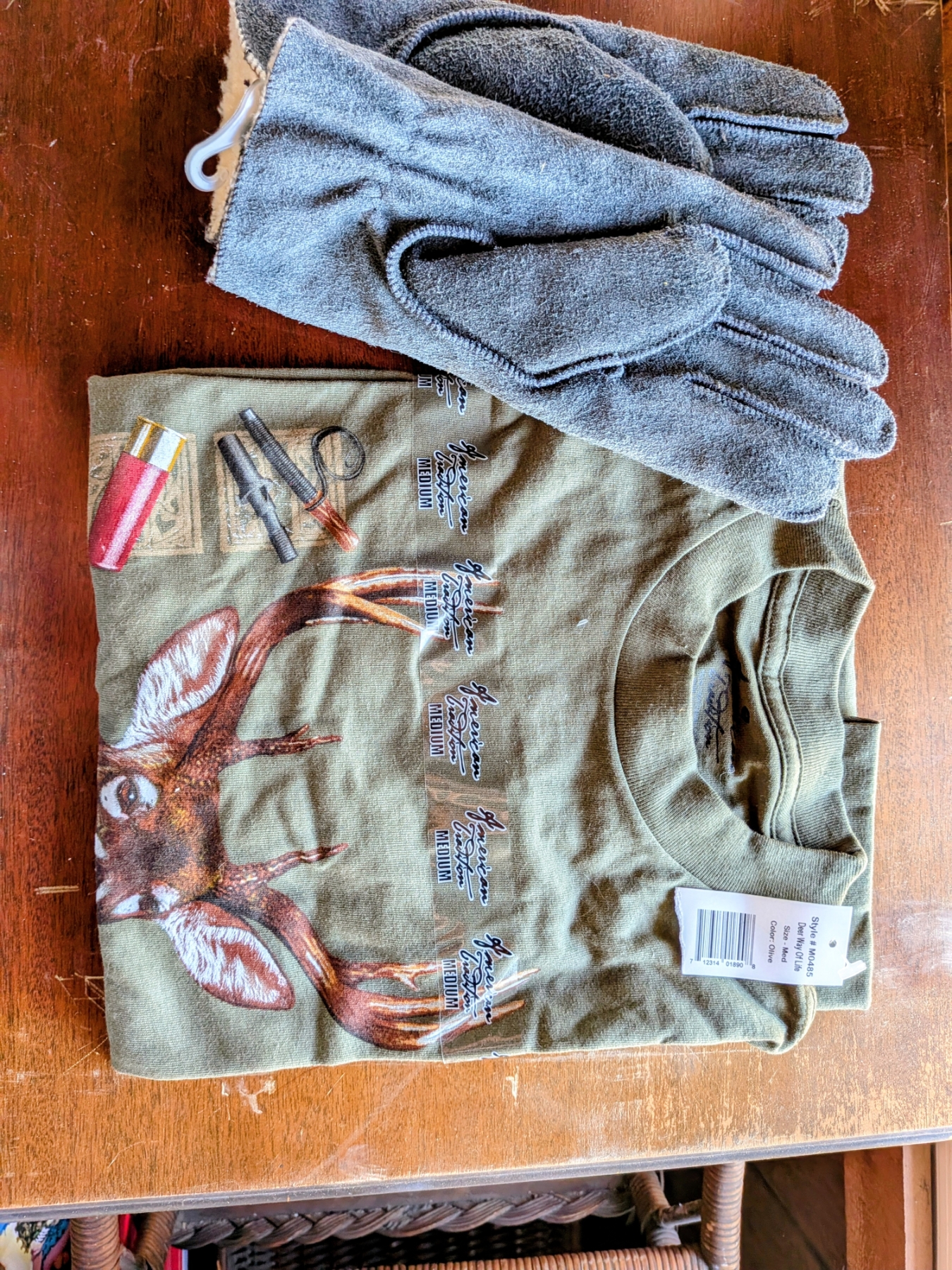 New Size Medium Deer Tee & New Size Medium Gray Suede Gloves