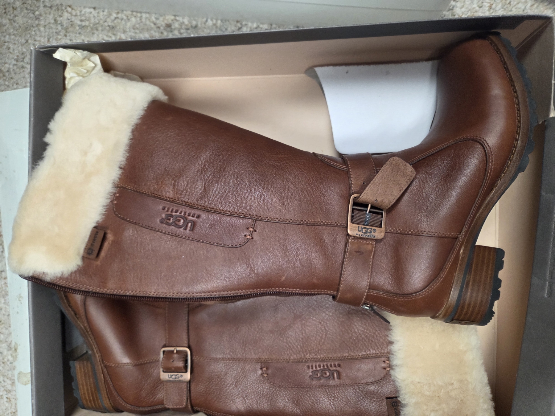 New Tall Dark Brown Leather UGG Australia Size 7 Boots