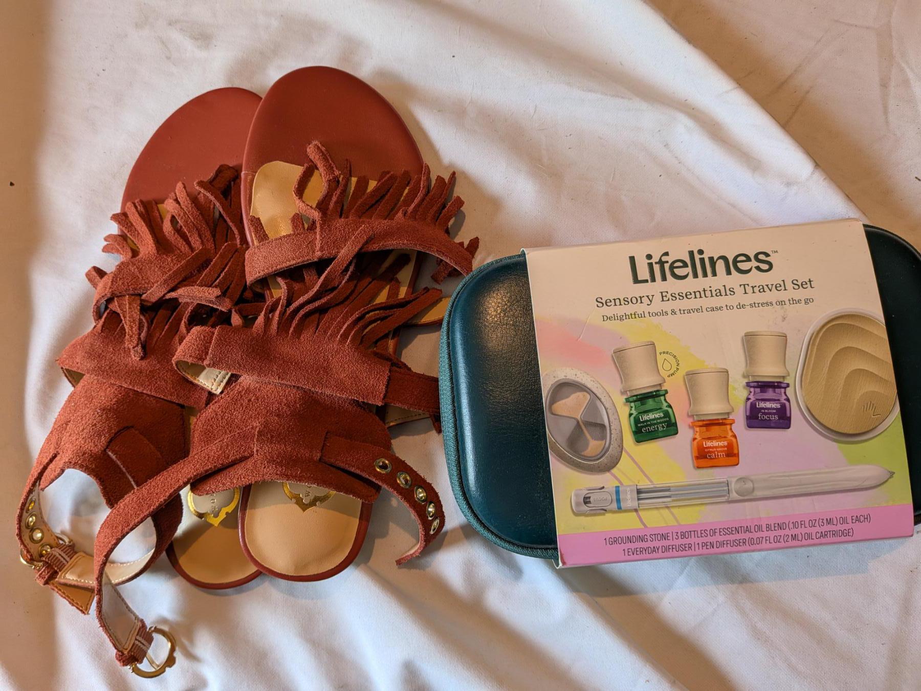 New Travel Essential Oil Set And New Size 6.5 Leather Sandals