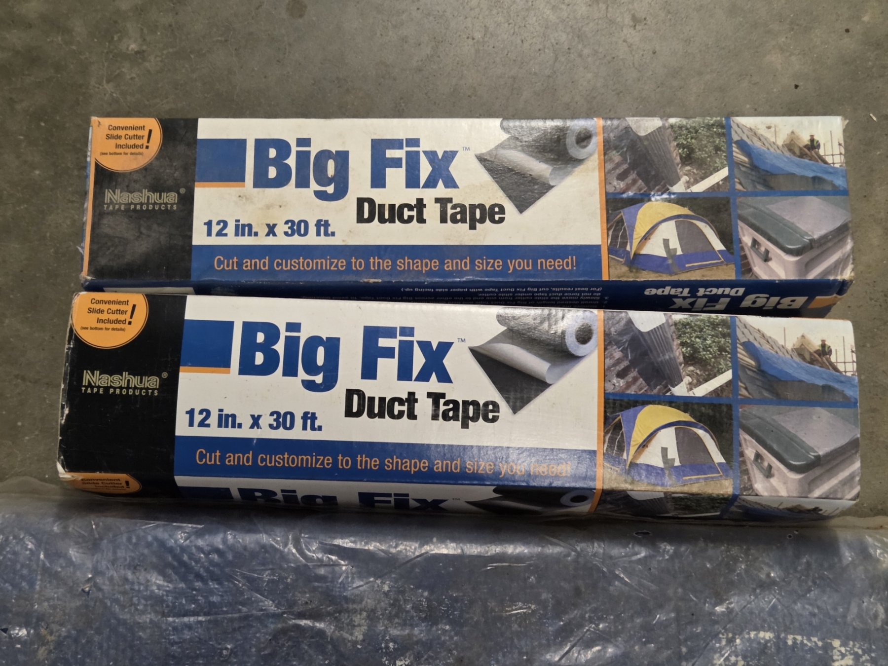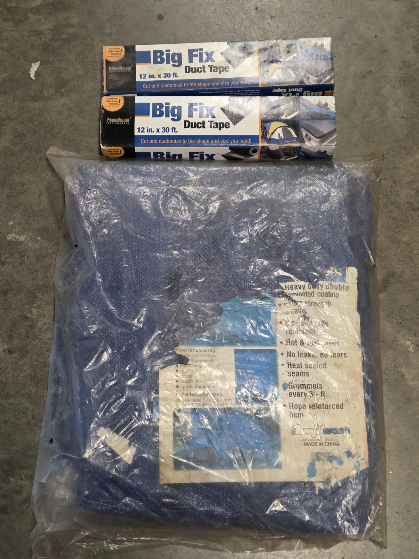 New- Two Big Fix 12'' x 30ft Duct Tape And New Poly Tarp