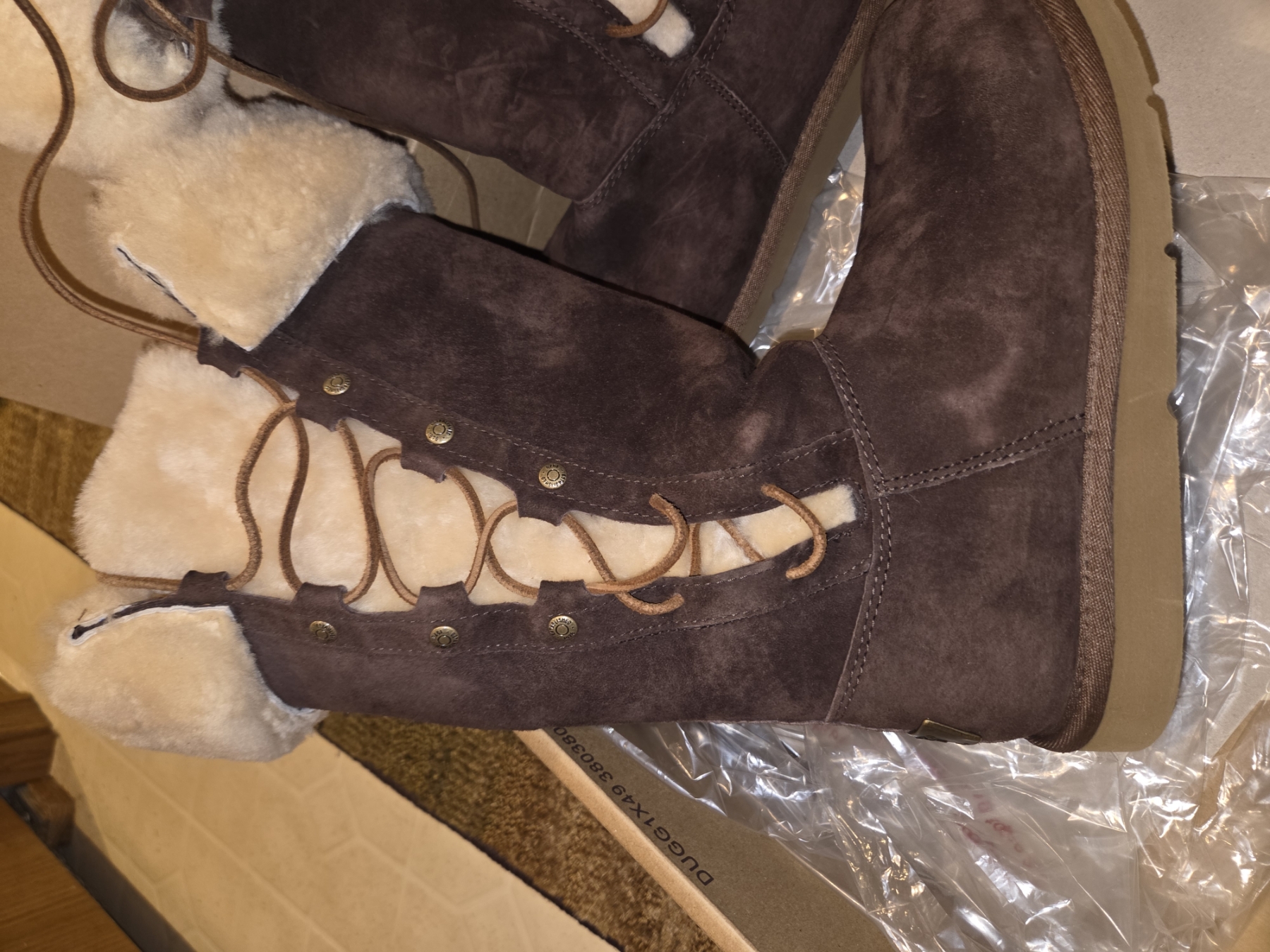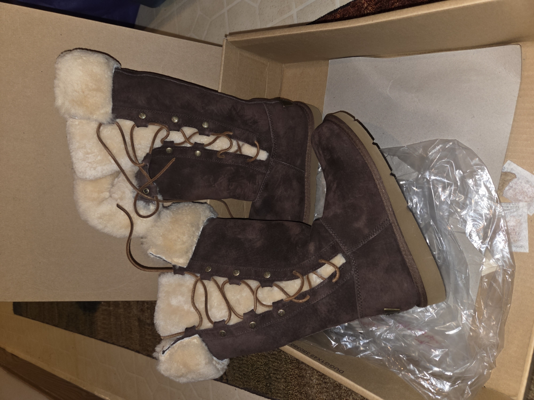 New!! Ugg Australia Chocolate Brown Lace Up Winter Leather & Sheepskin Size 6 Boots