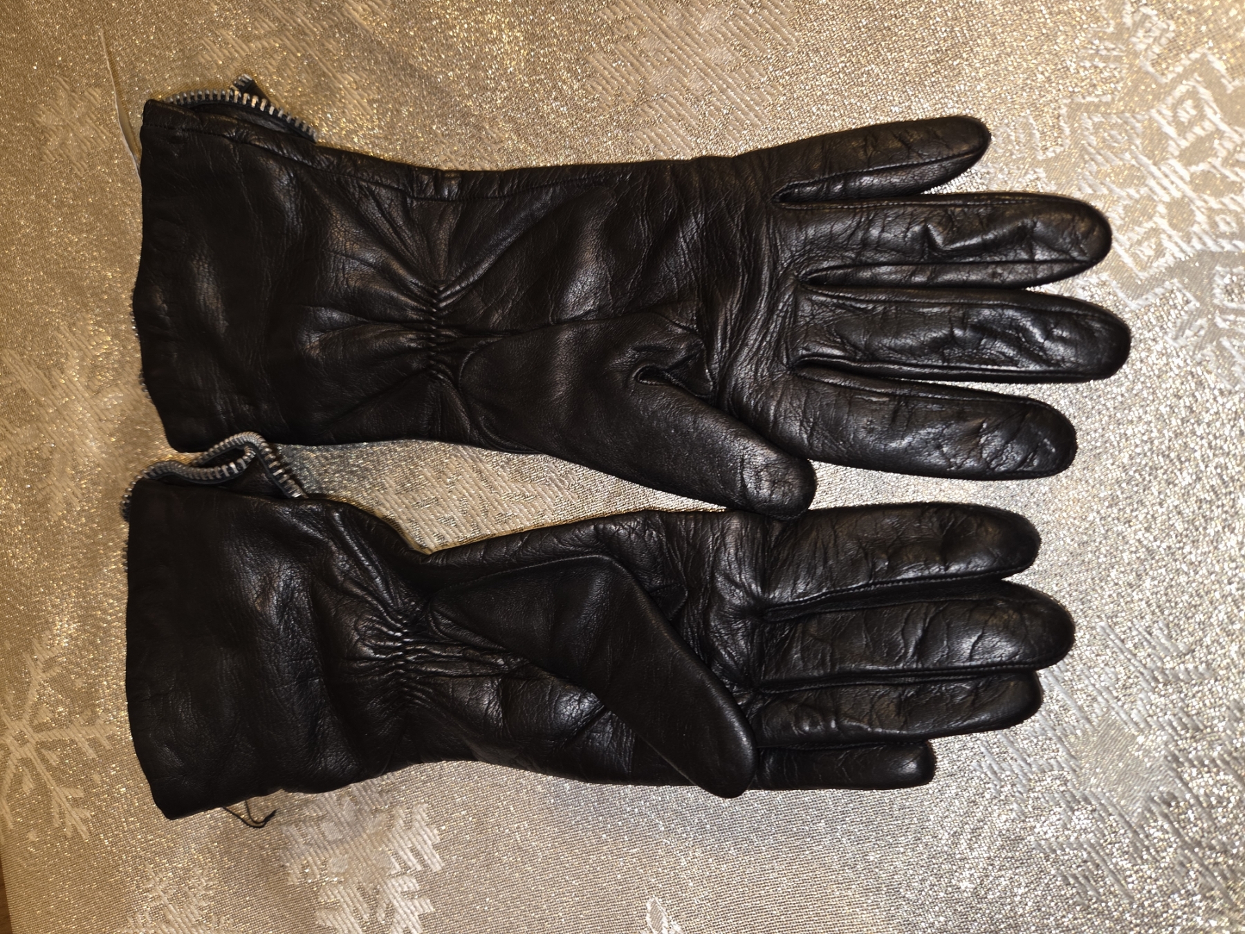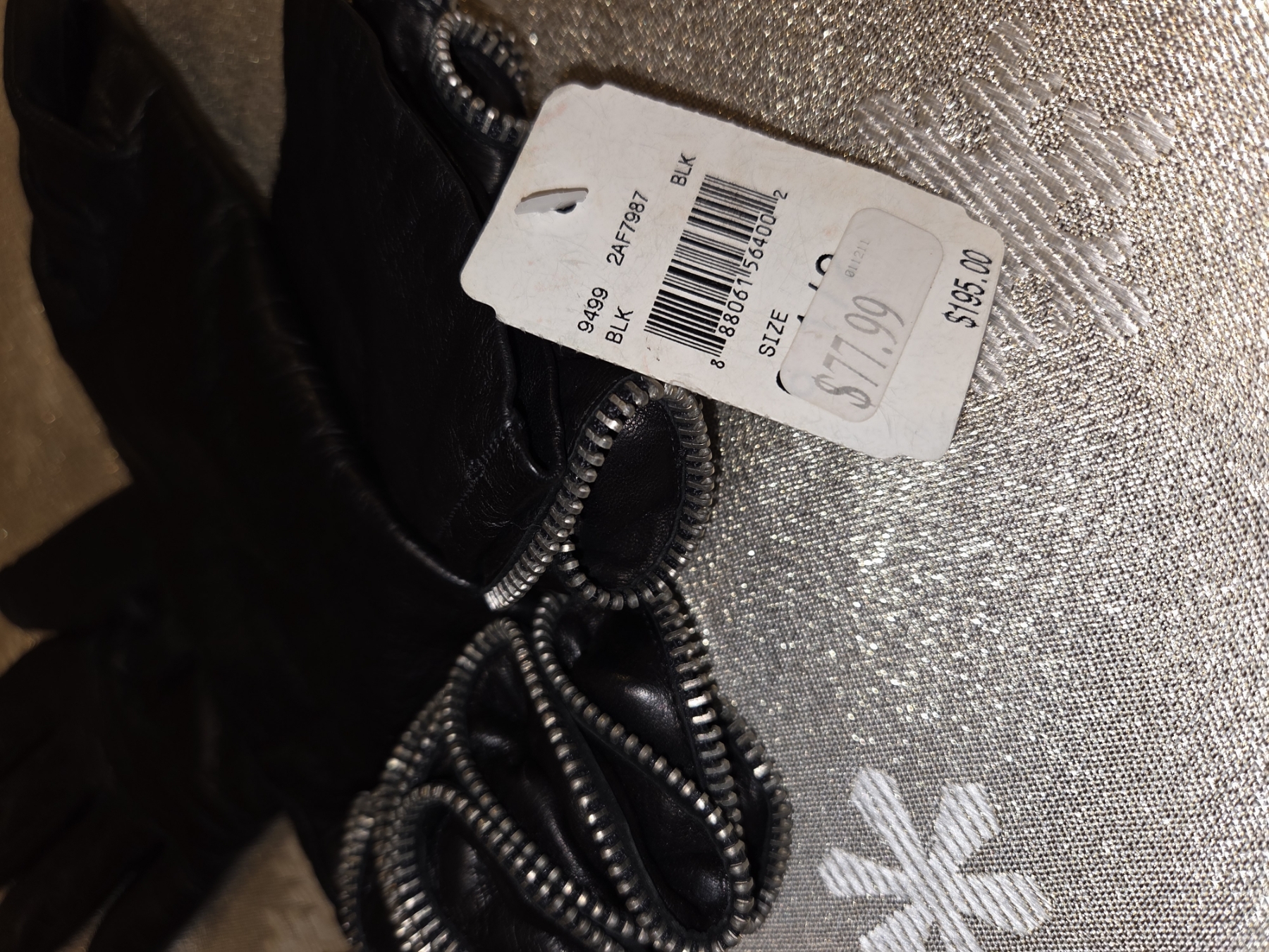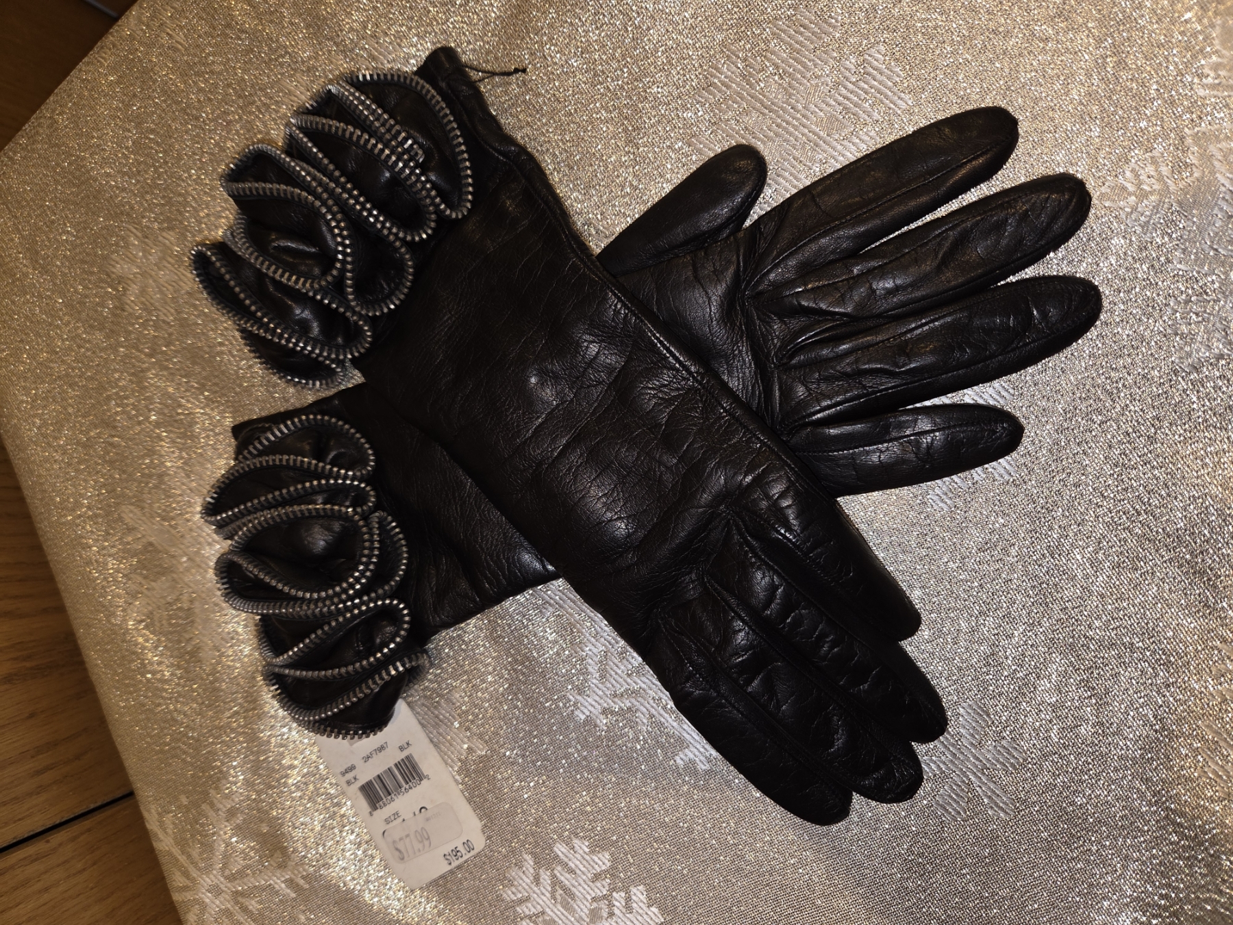 New With Tags Black Leather Ladies Gloves With Zipper Detail