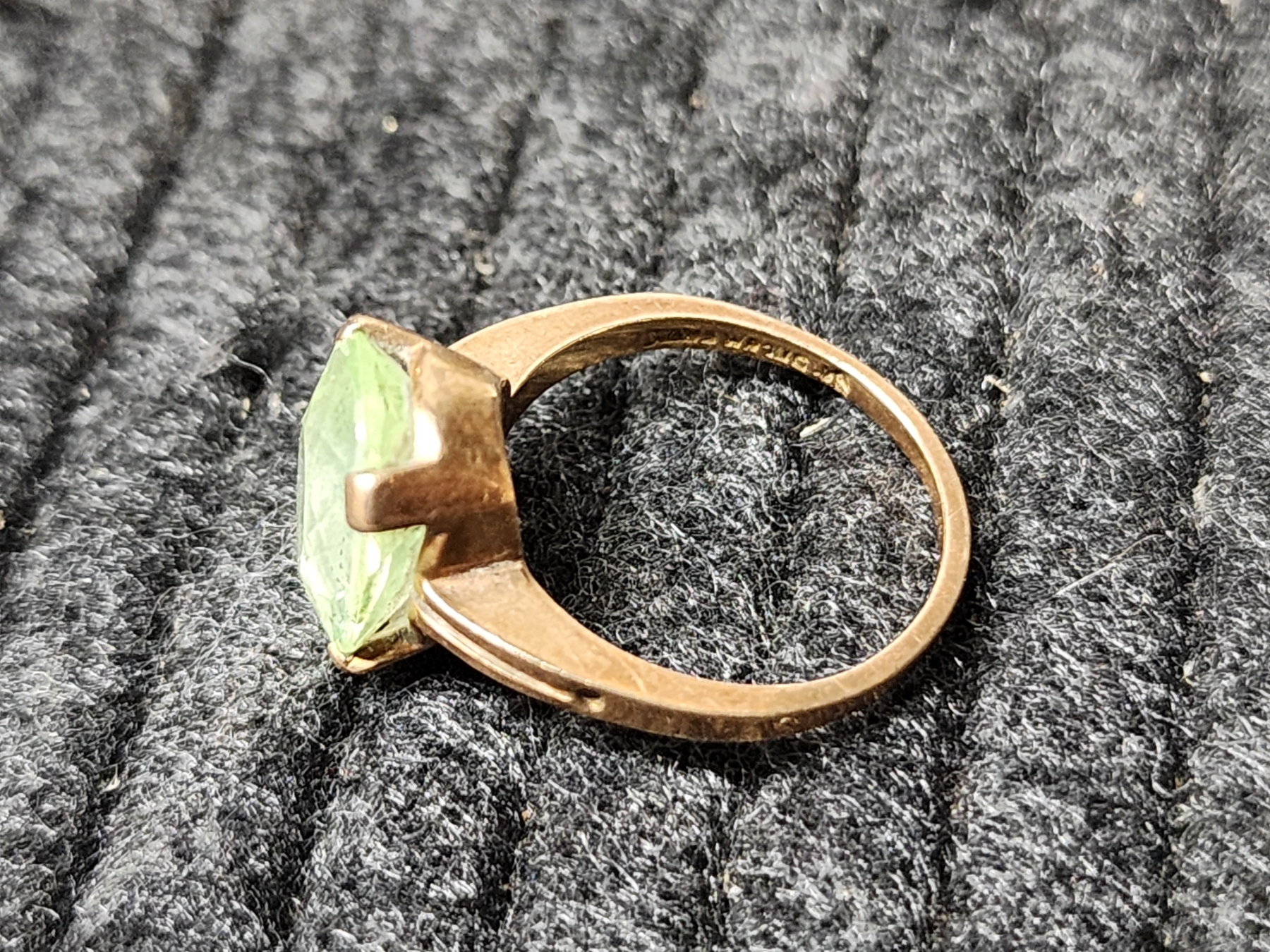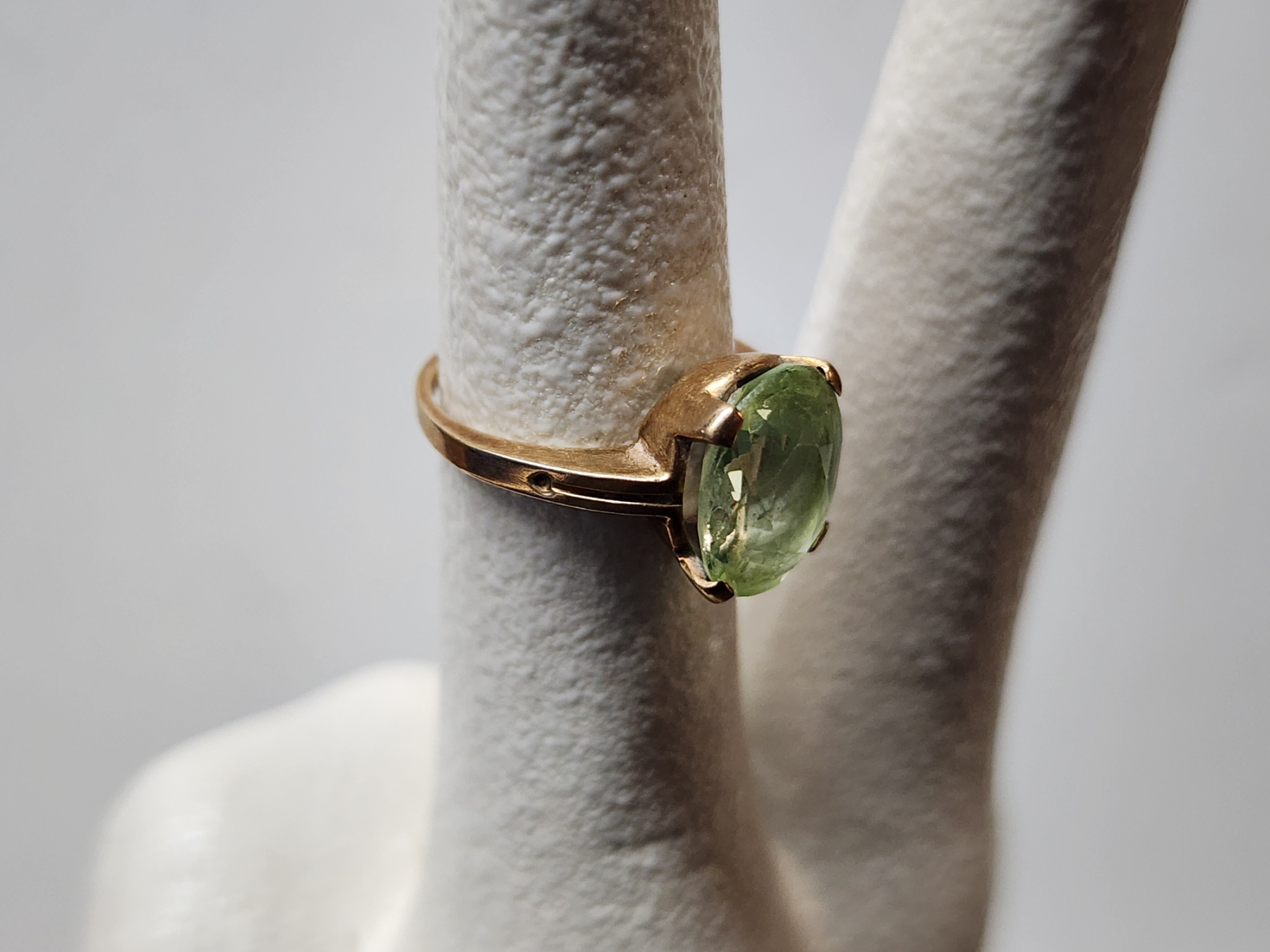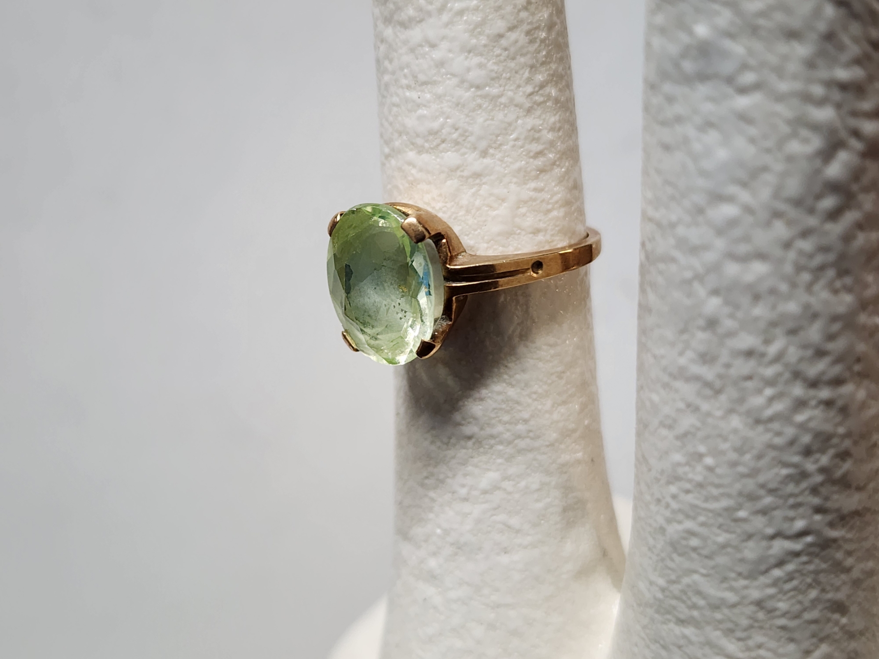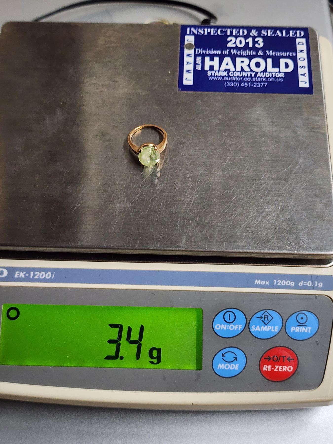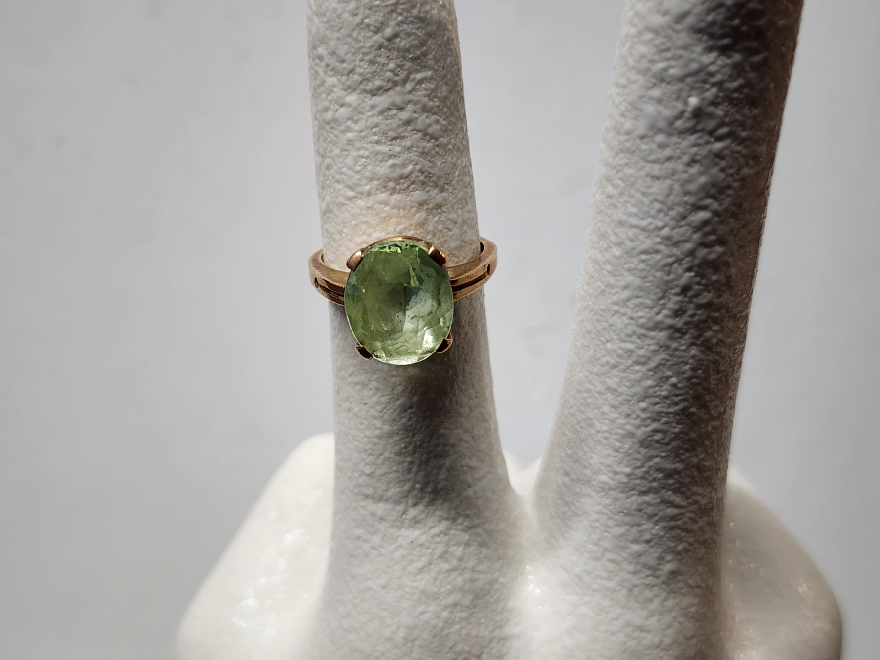 Nice 10K Yellow Gold Ring Featuring Light Green Stone ~ SIZE 6 ~ Weighing 3.4 Grams