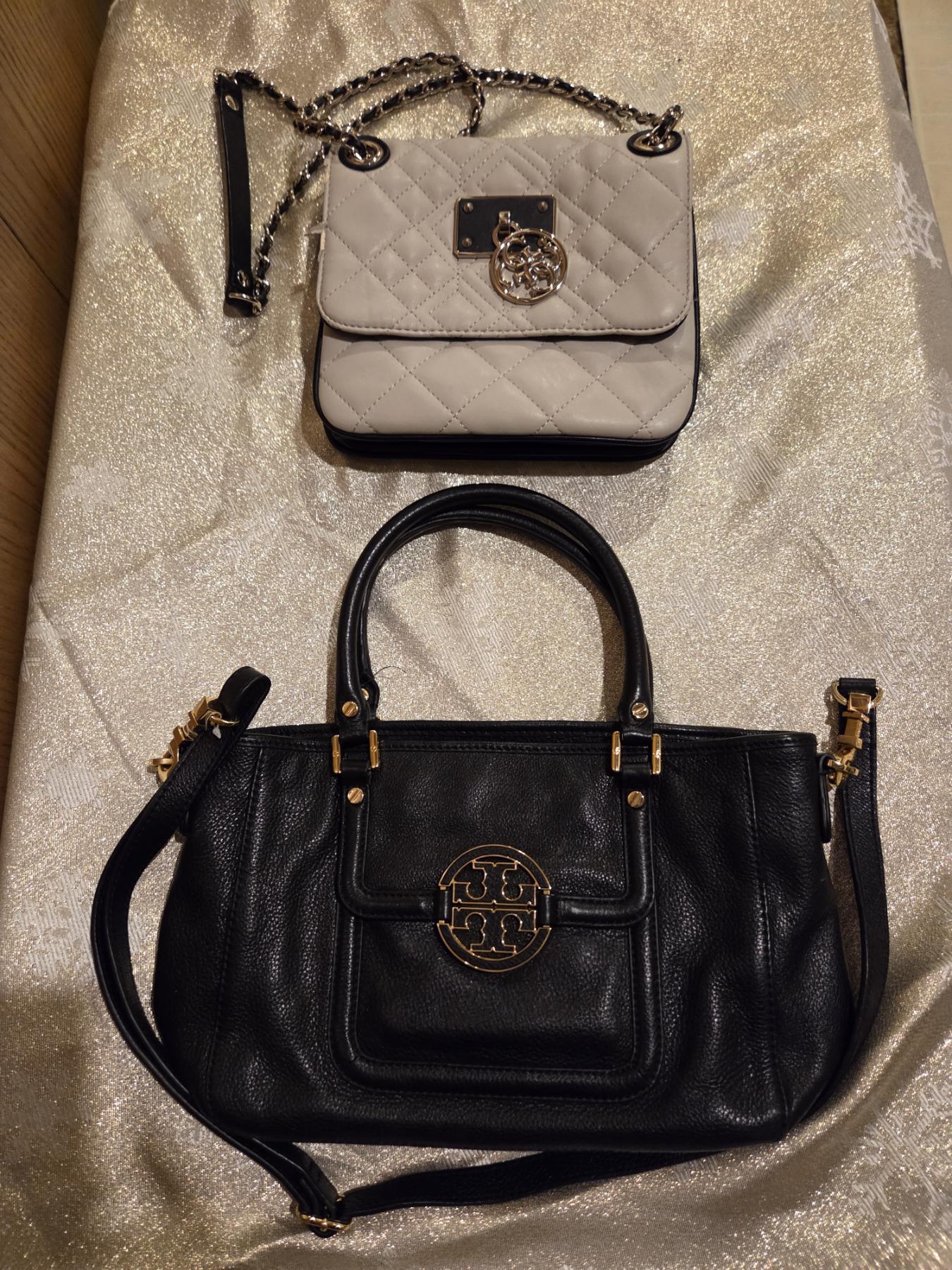 Nice Black Leather Tory Burch Bag And Small Cream Colored Guess Brand Bag