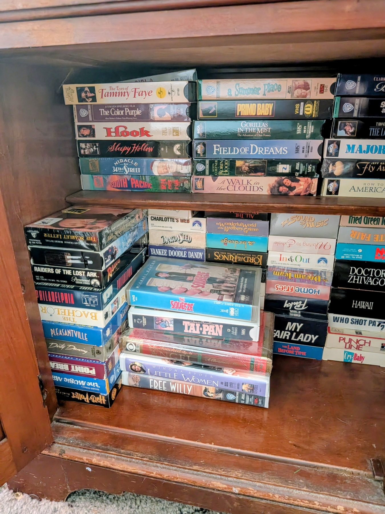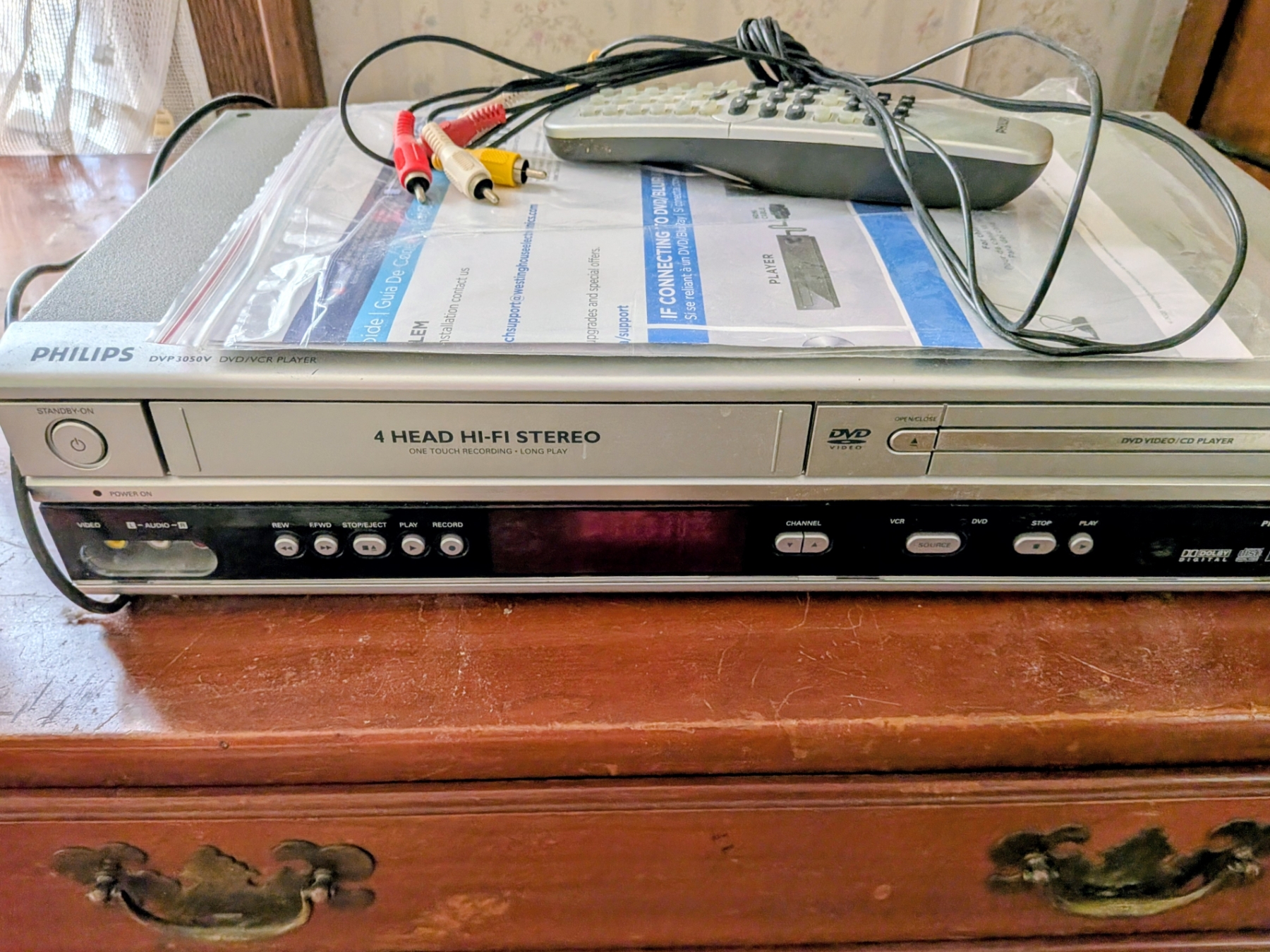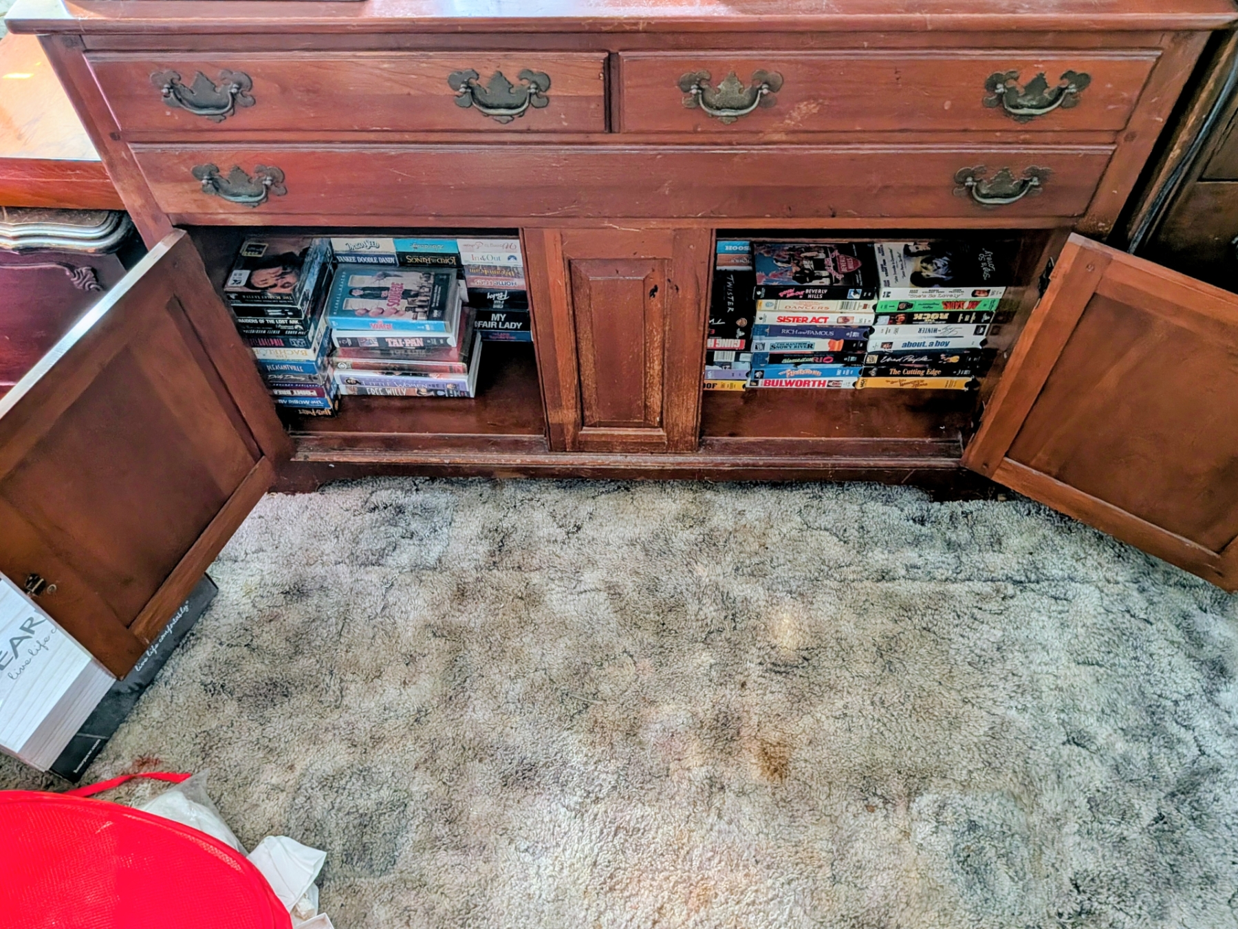 Nice Condition Wood Dresser 38"x52" And 49"x34" Dresser With Phillips VHS & DVD Player & Huge Lot Of VHS Tapes!