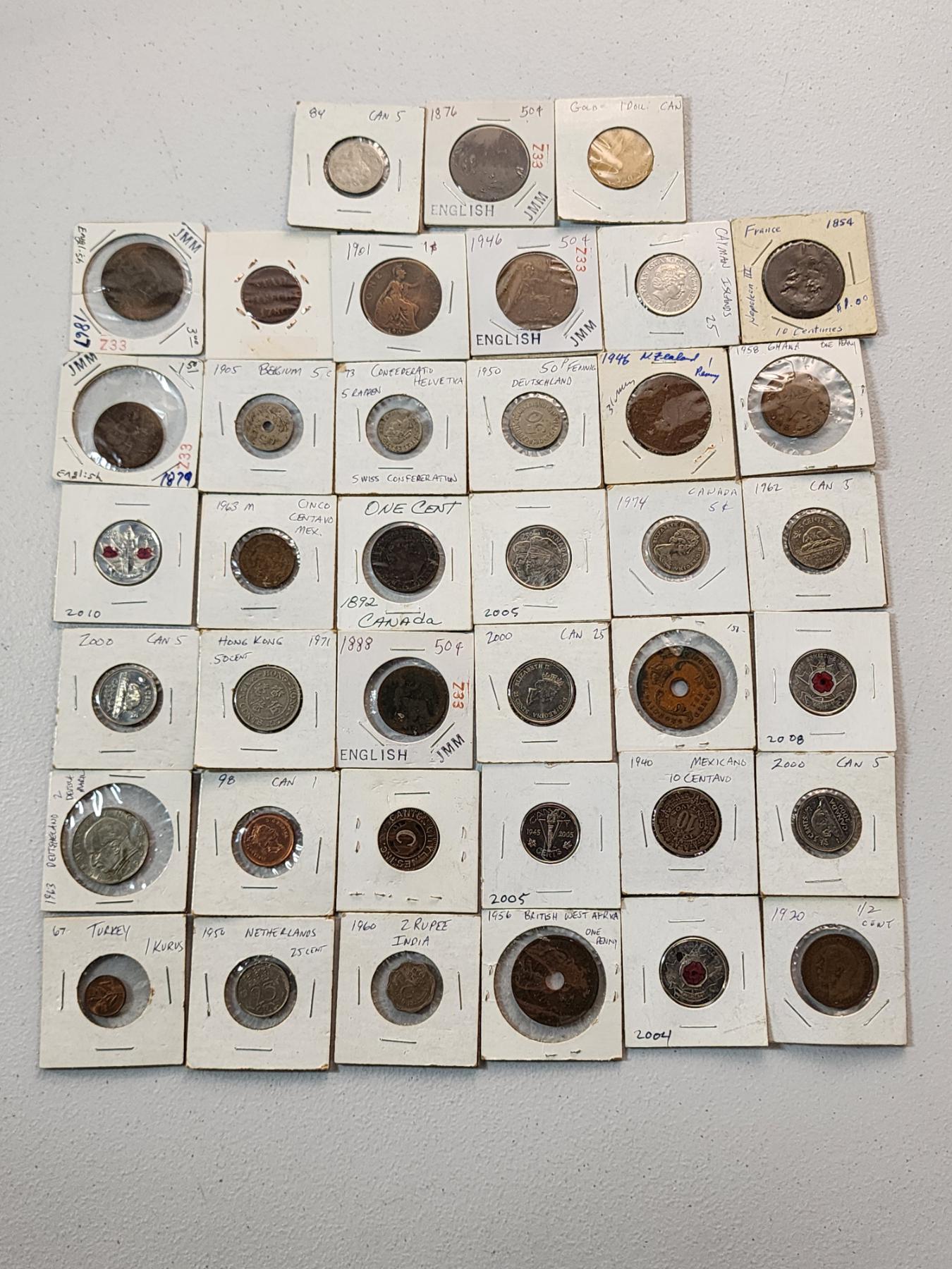 Nice Large Lot of 39 Assorted World Coins/Tokens! - See Photos!