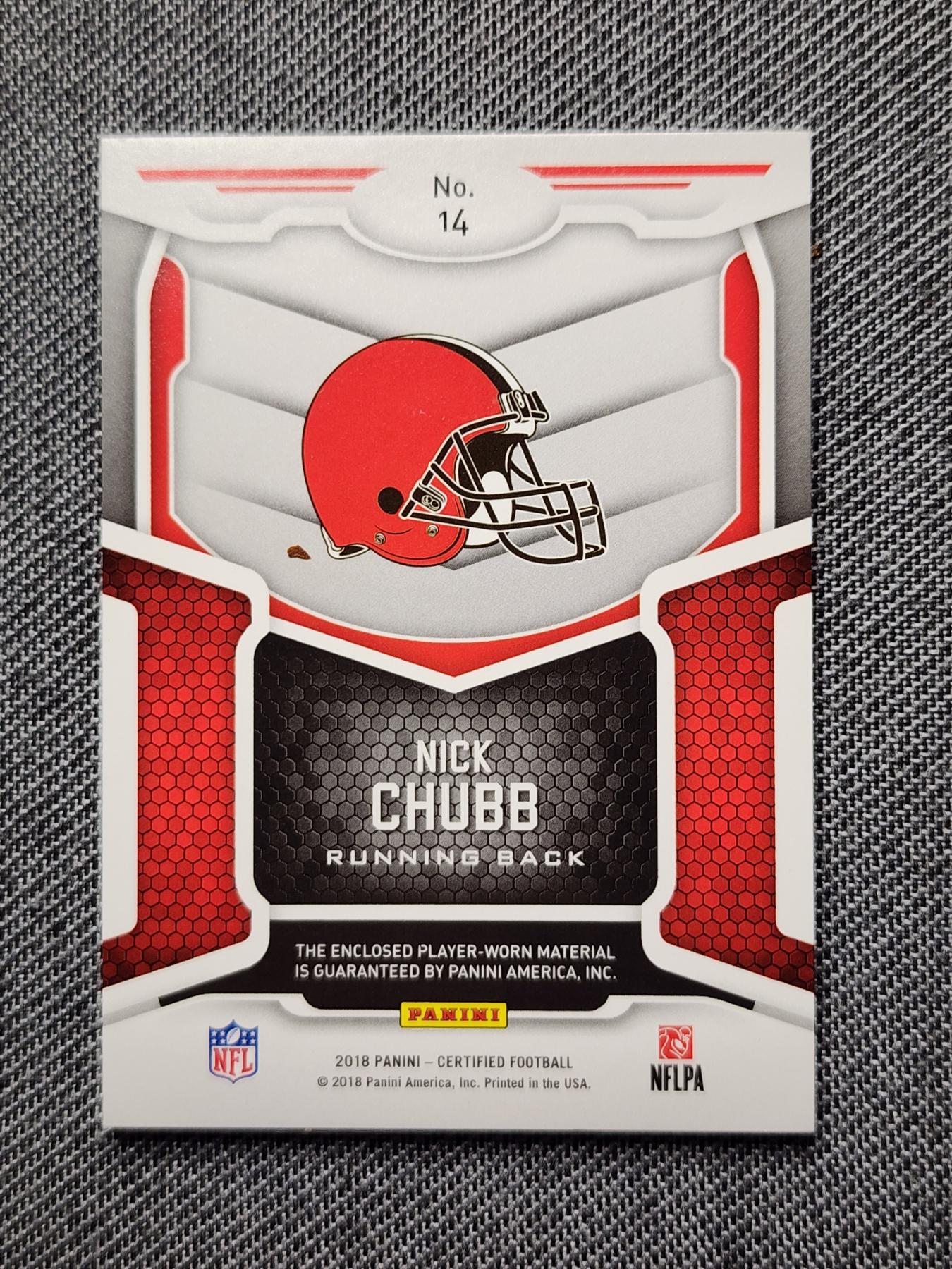 Nick Chubb Worn Material Patch Card - 2018 Panini Certified Football Trading Card No. 14