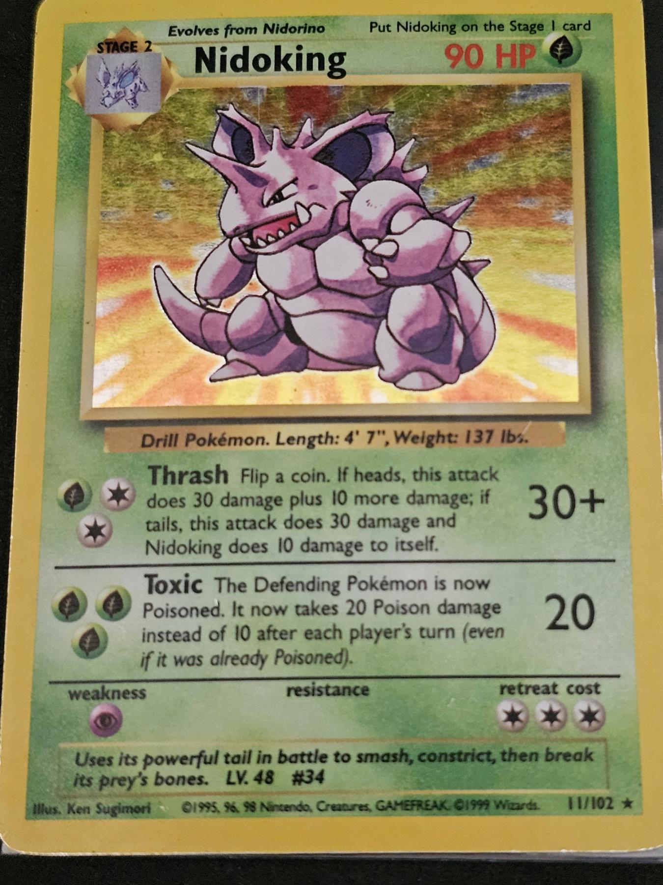 Nidoking 11/102 Rare Vintgage Pokemon Trading Card - Comes with Protective Sleeve, GREAT CONDITION!!! PLACE YOUR BID AND CATCH 'EM ALL TODAY!!!