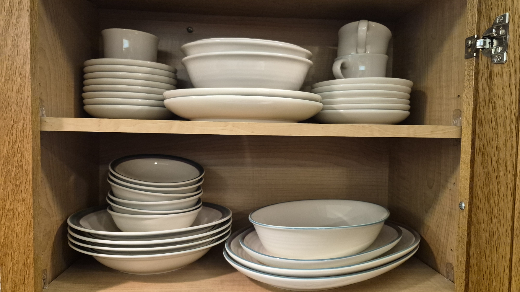 Numerous Assortment China Set - White With Blue & Pink Trim See Pics