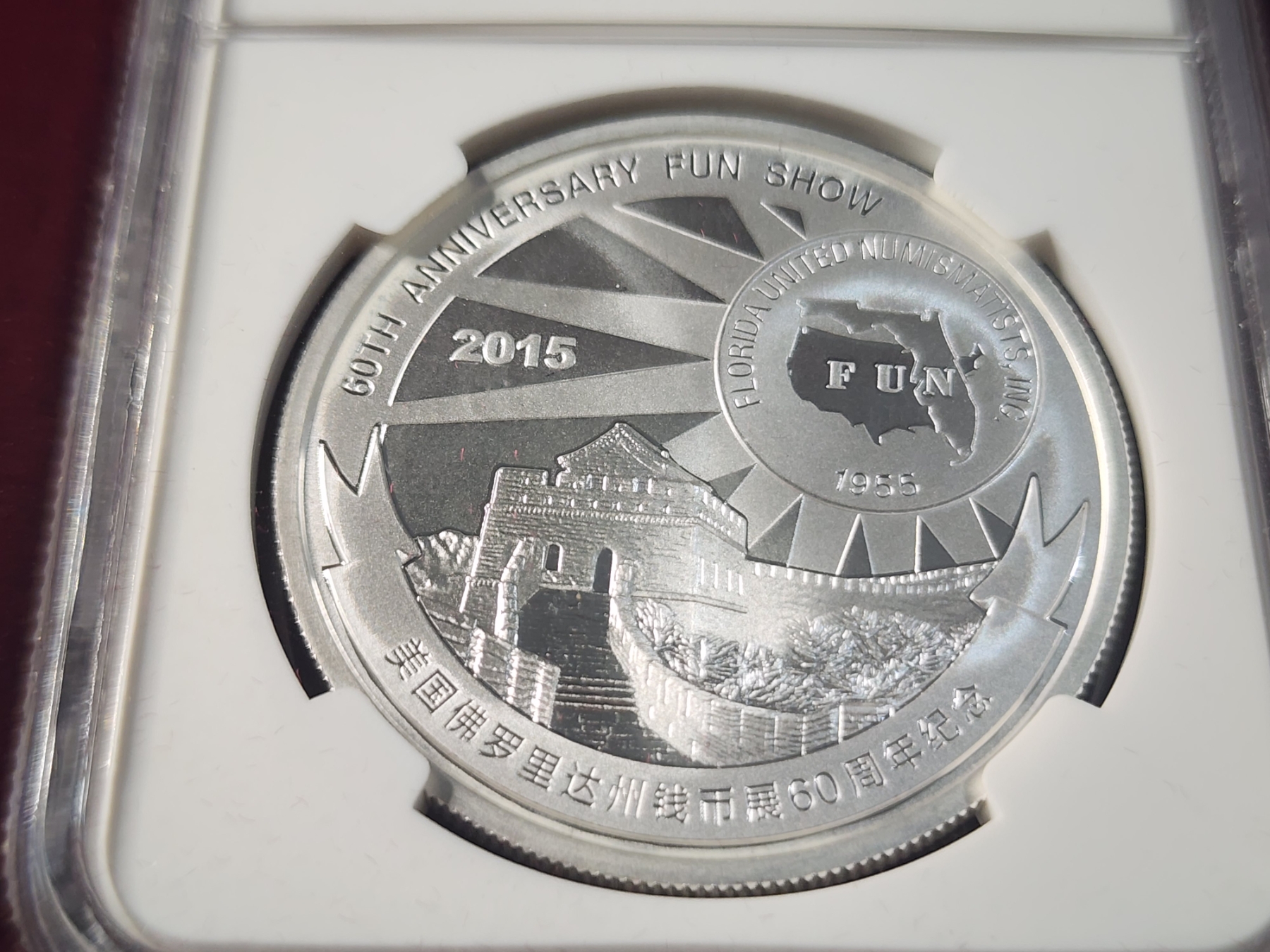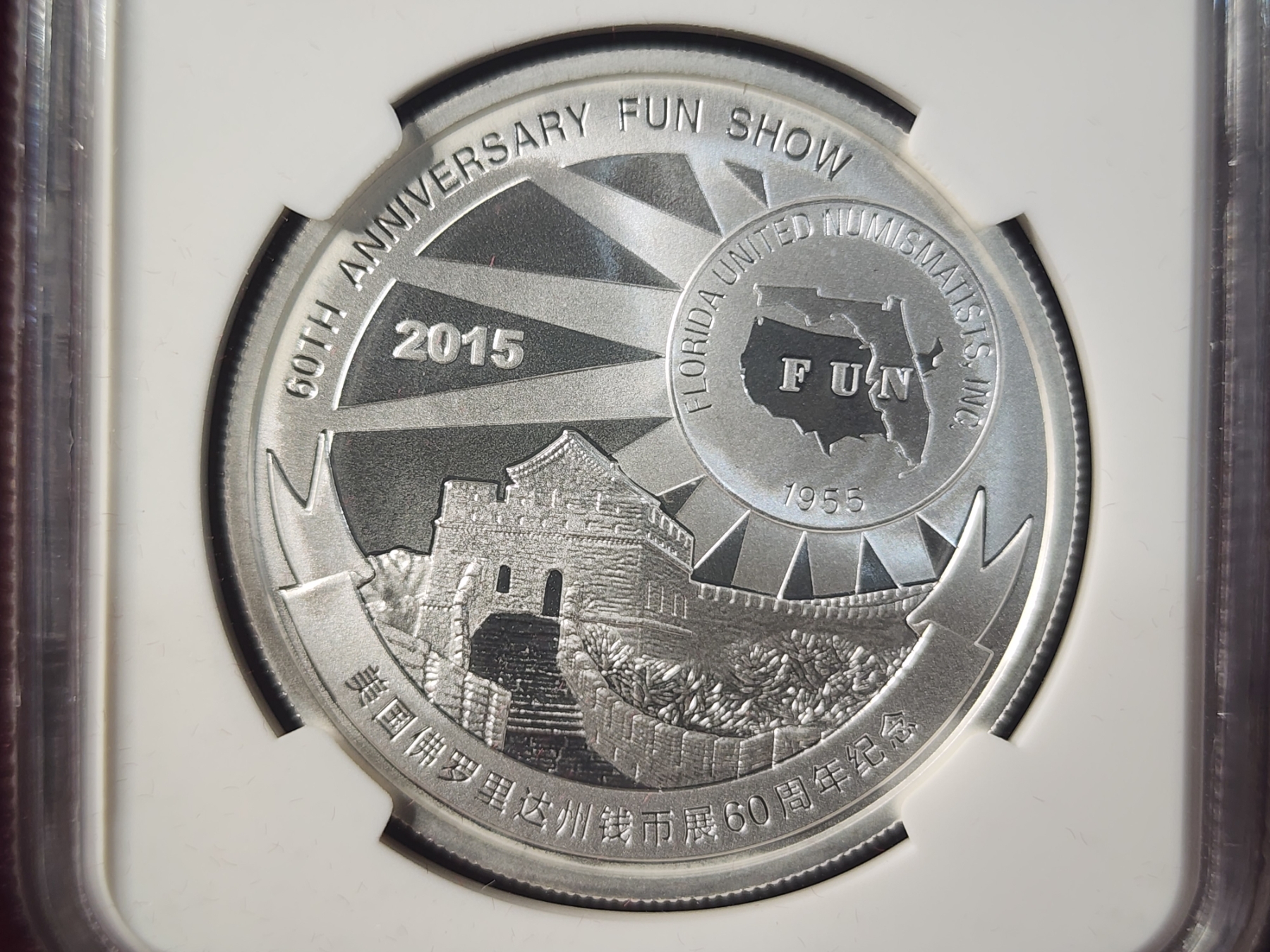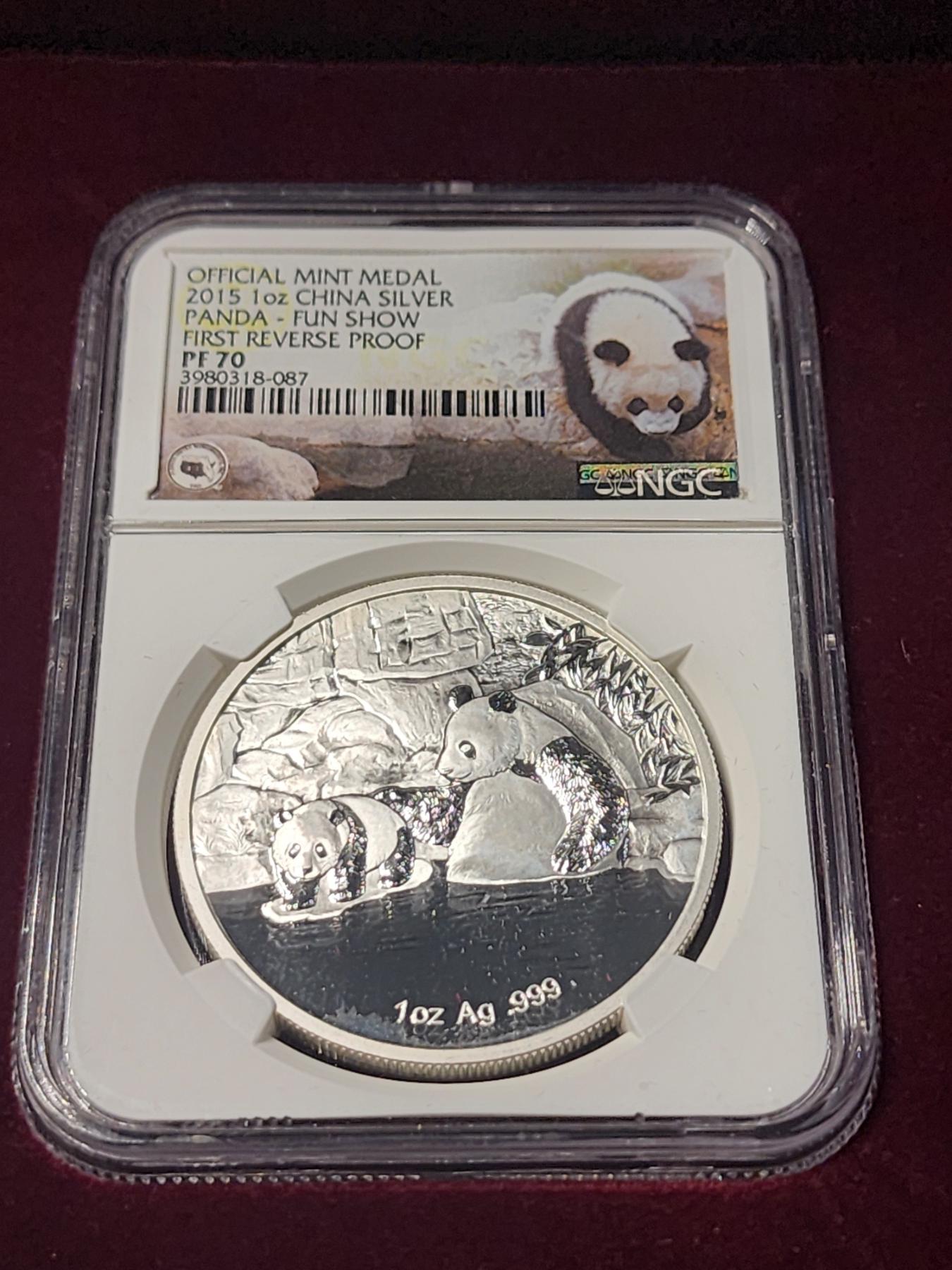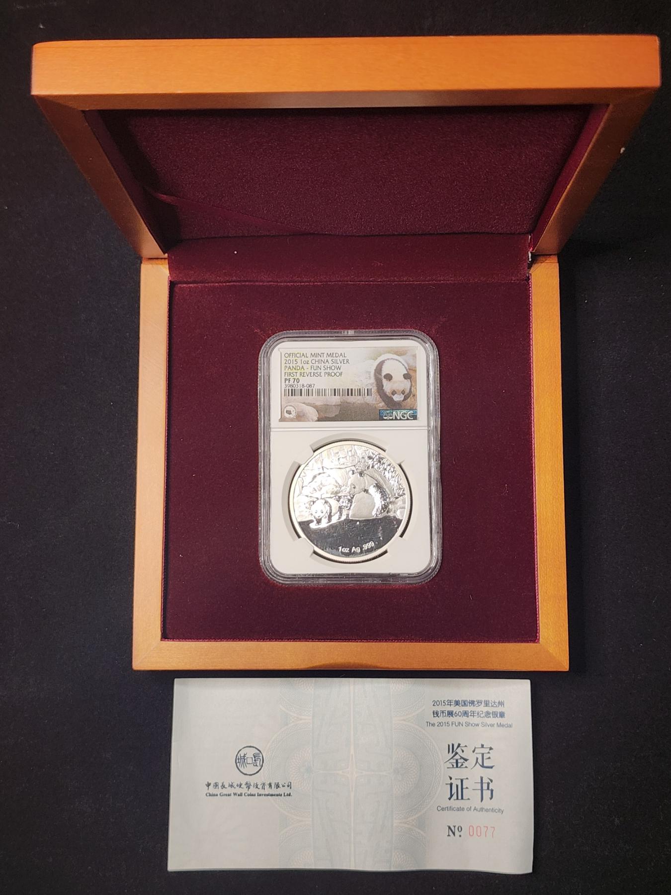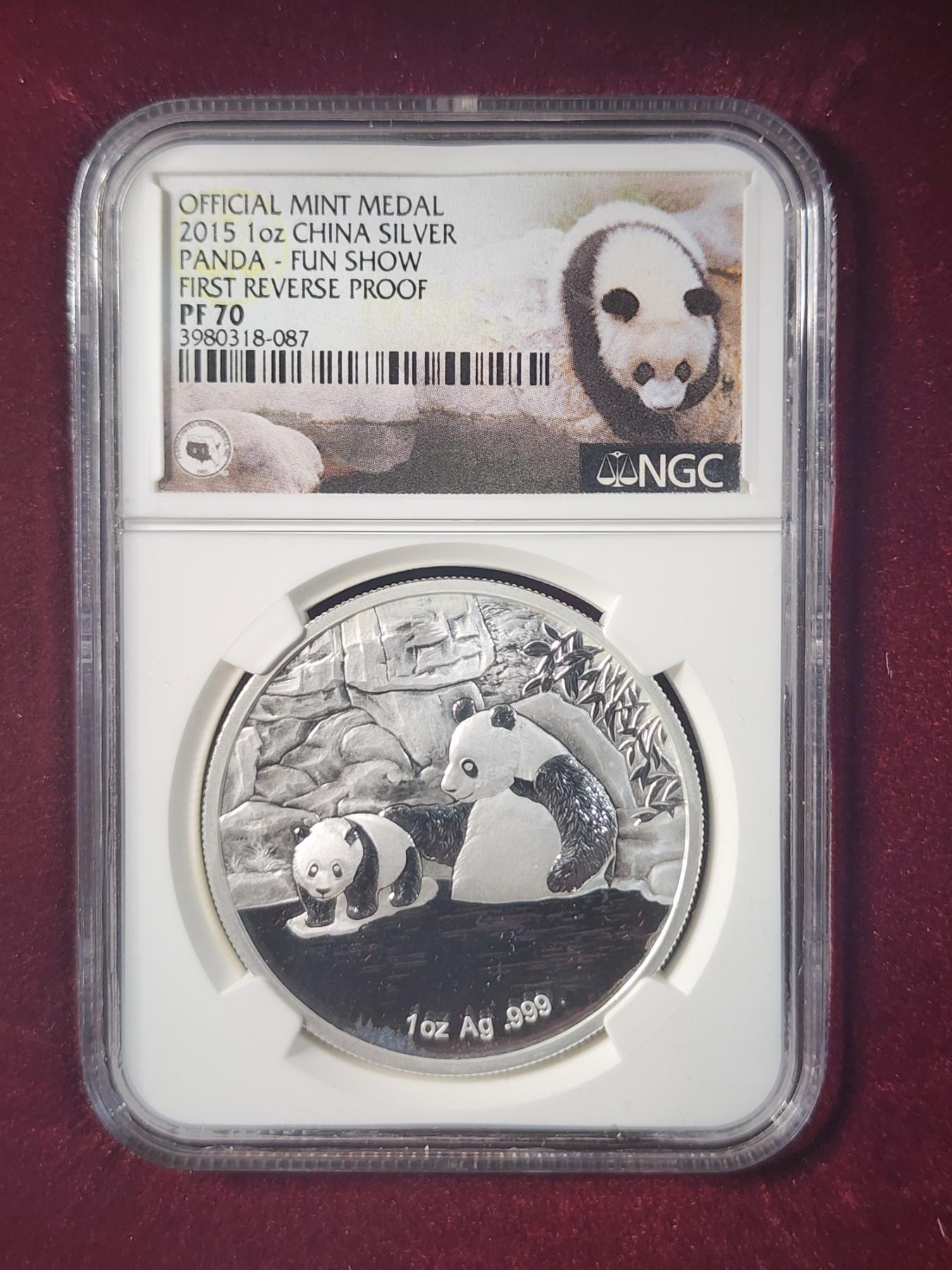 OFFICIAL MINT MEDAL 2015 Silver 1 Oz China Panda Round - FUN Show 60th Anniversary Reverse Proof