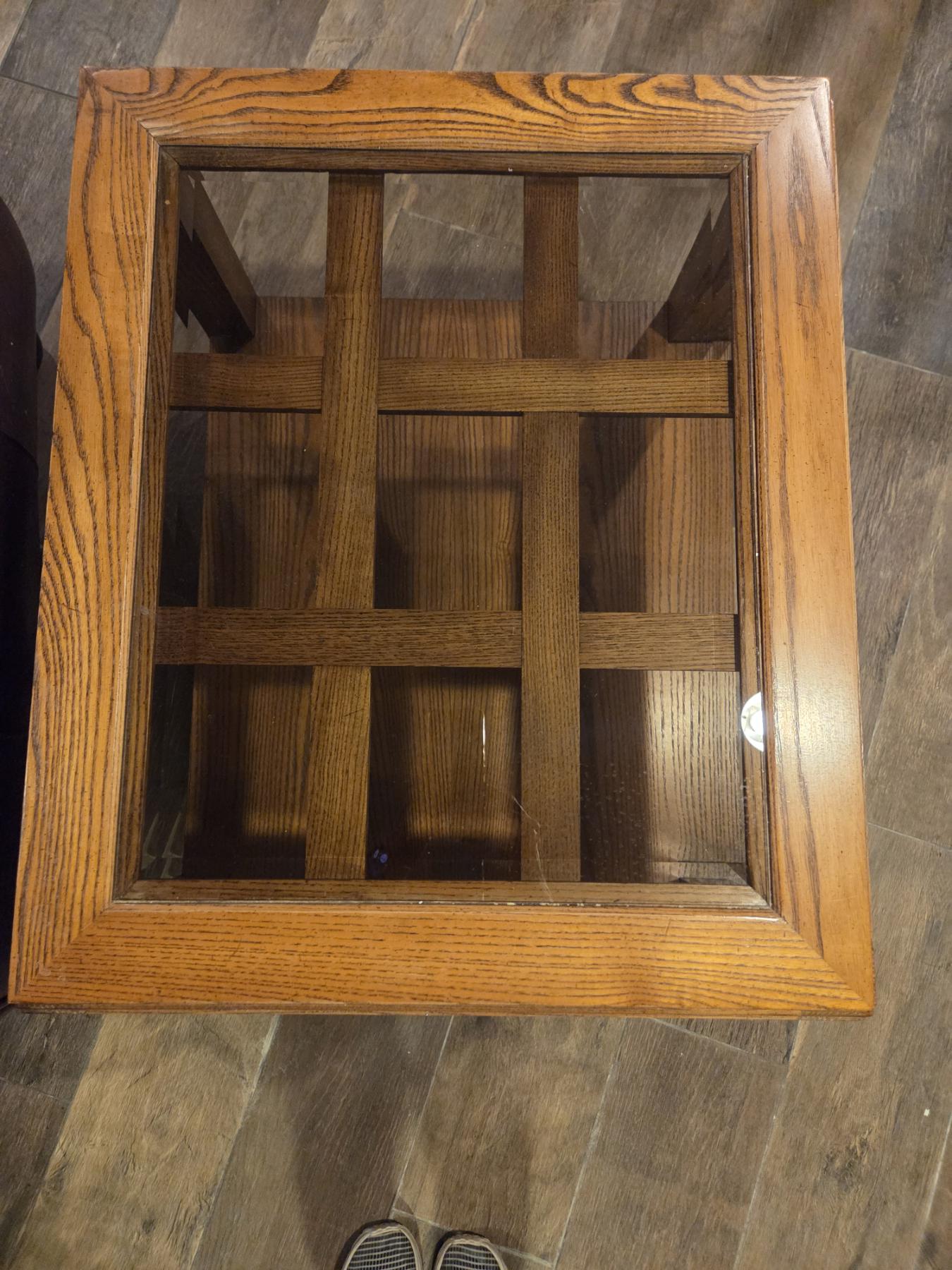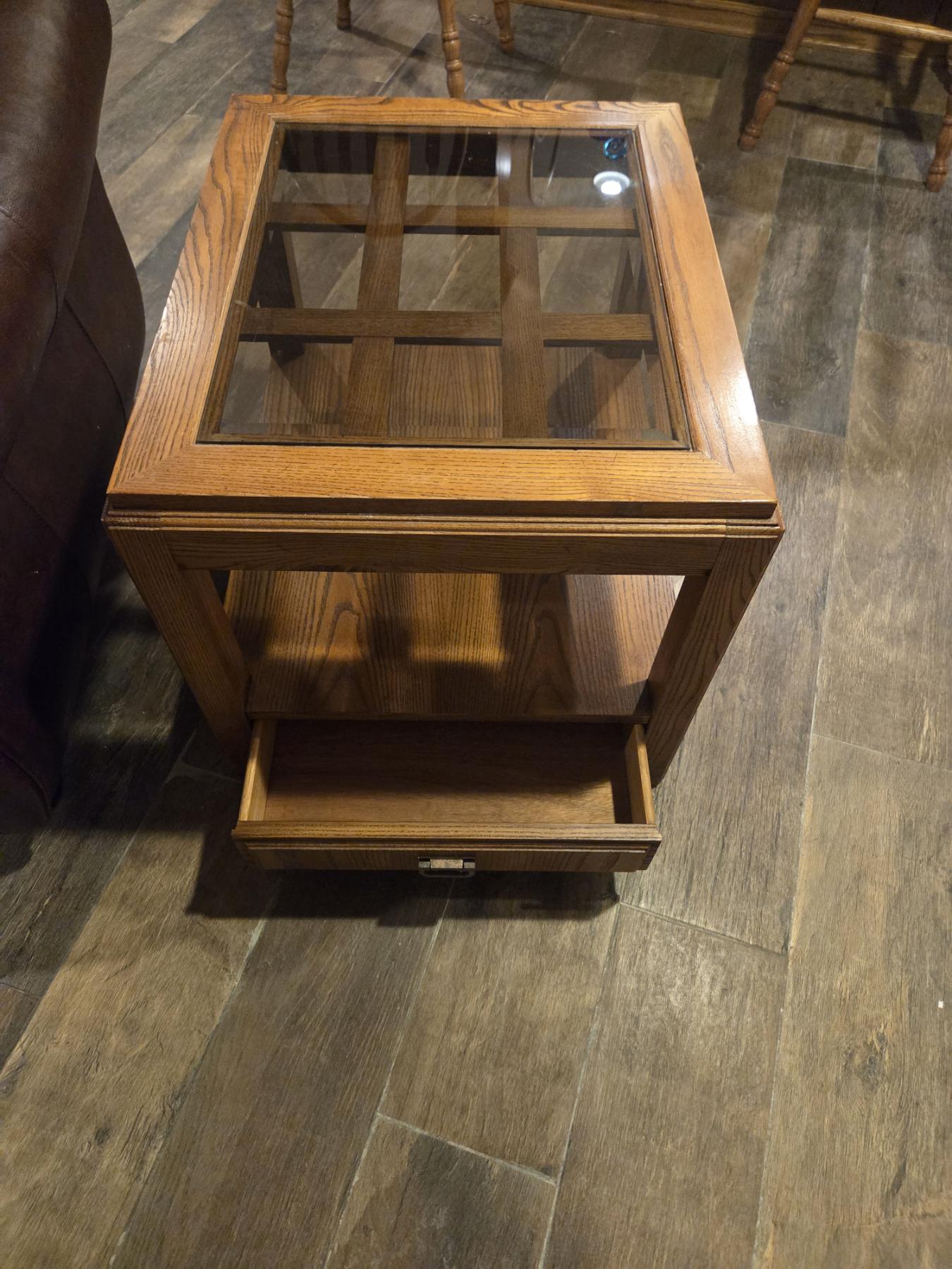 Oak Smoked Glass Pair Of Side Tables And Matching Coffee Table