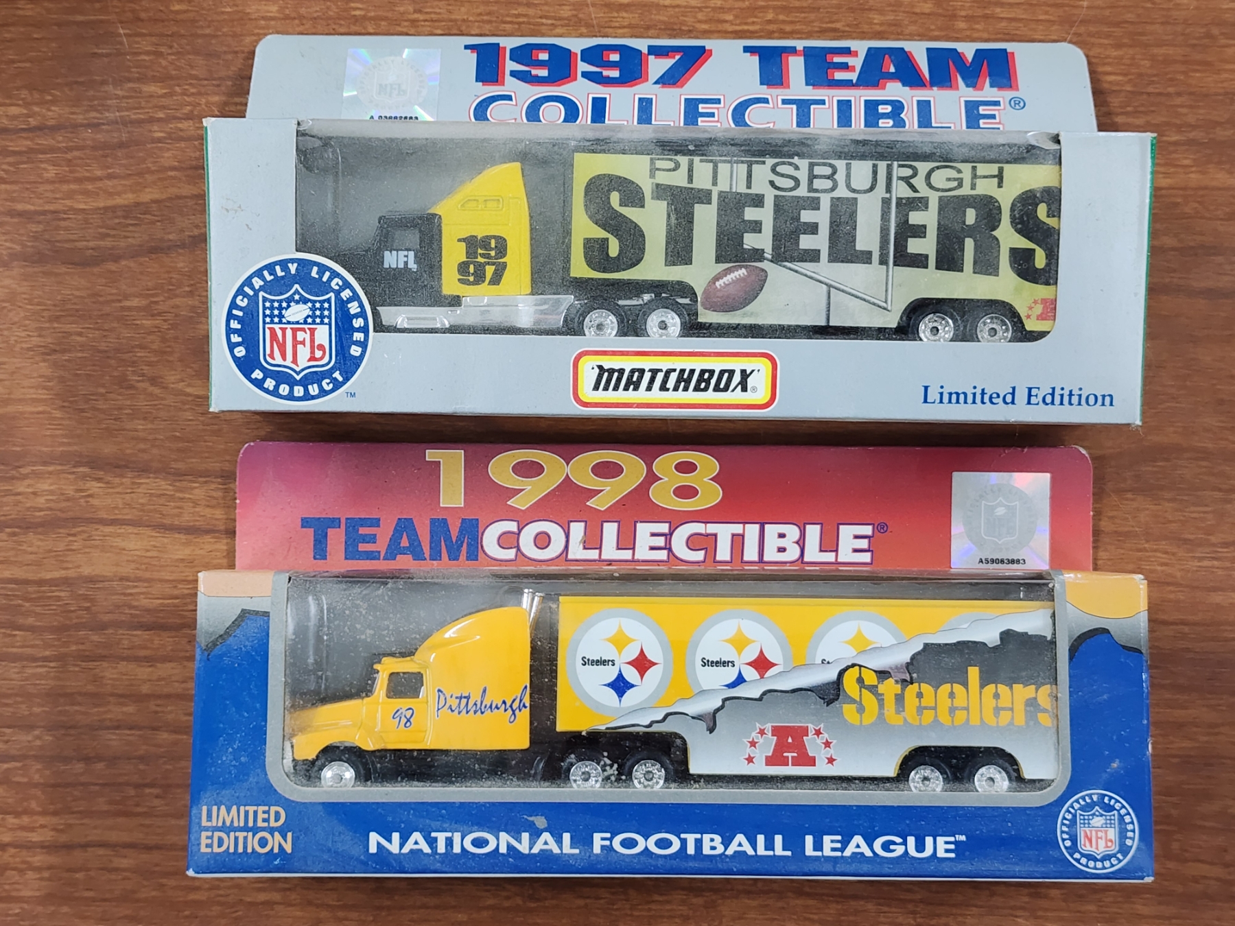 Officially Licensed NFL 1997 & 1998 Pittsburgh Steelers Limited Edition Truck & Trailer Toys In Box