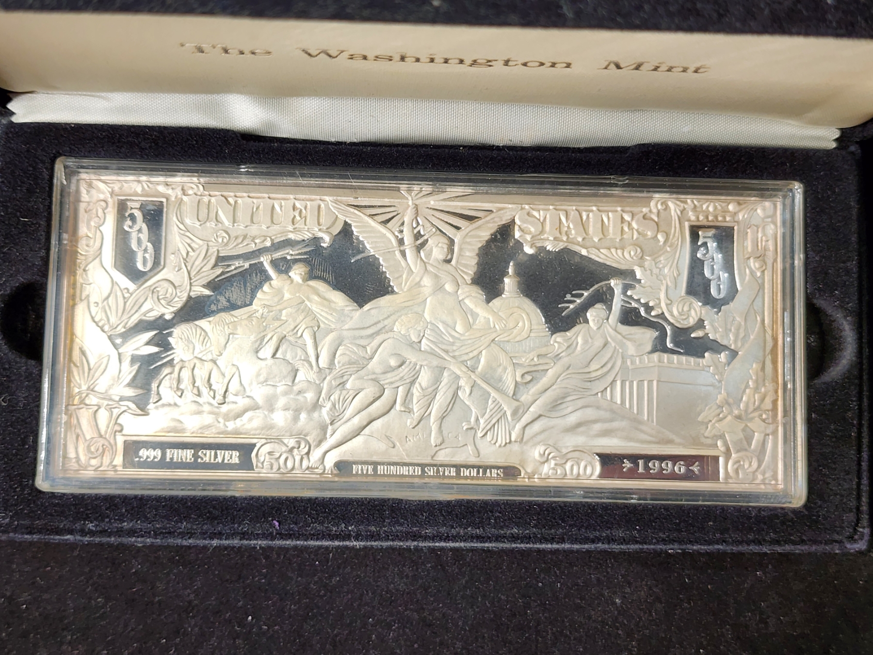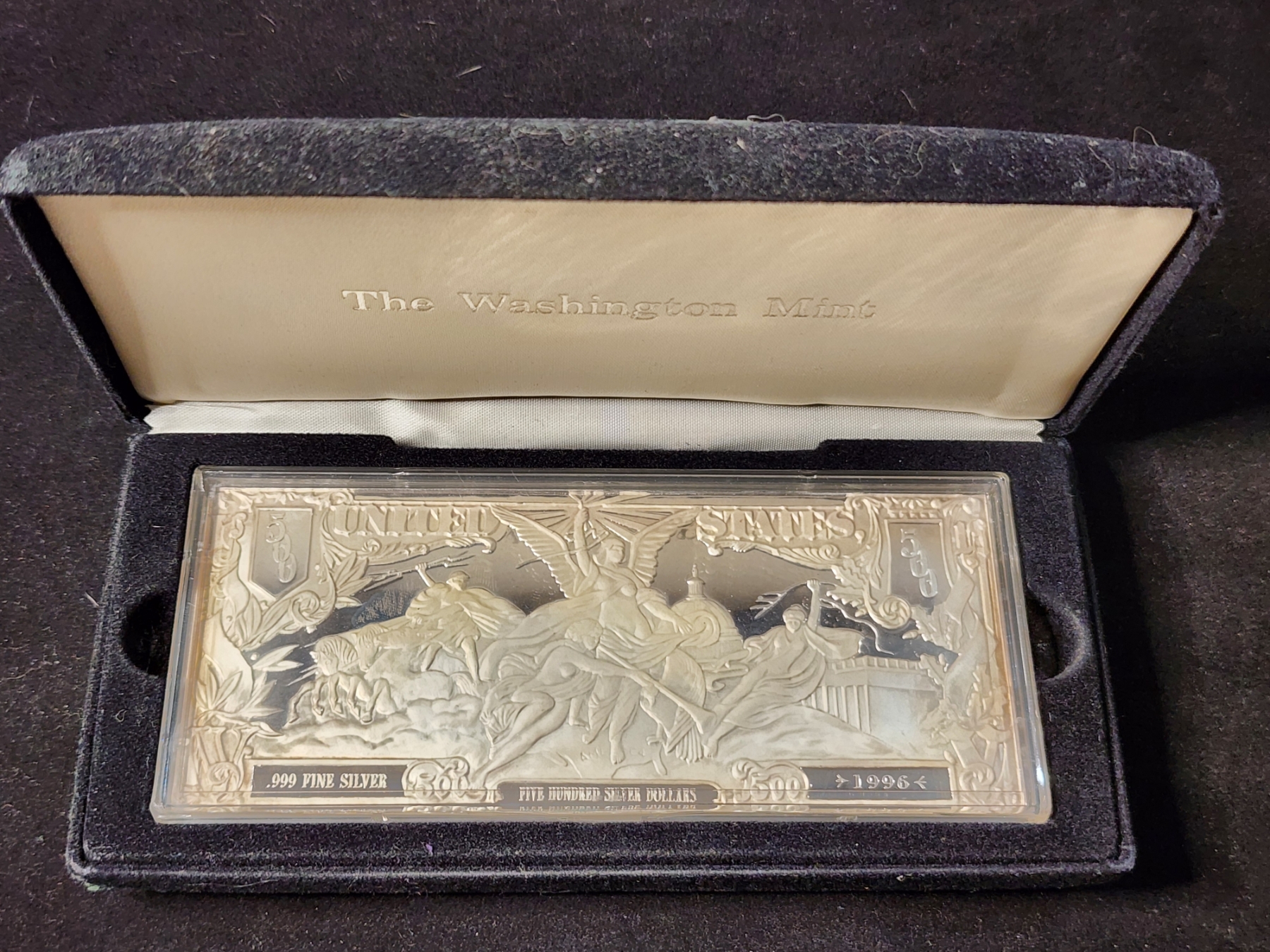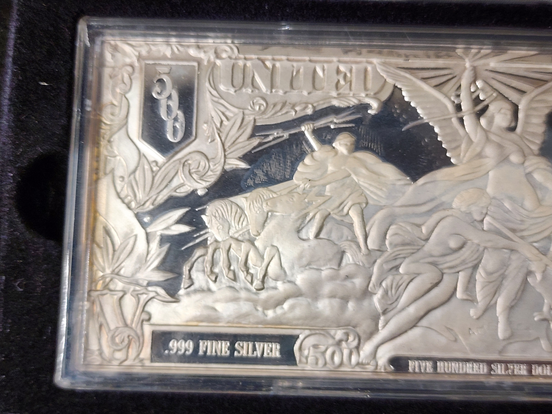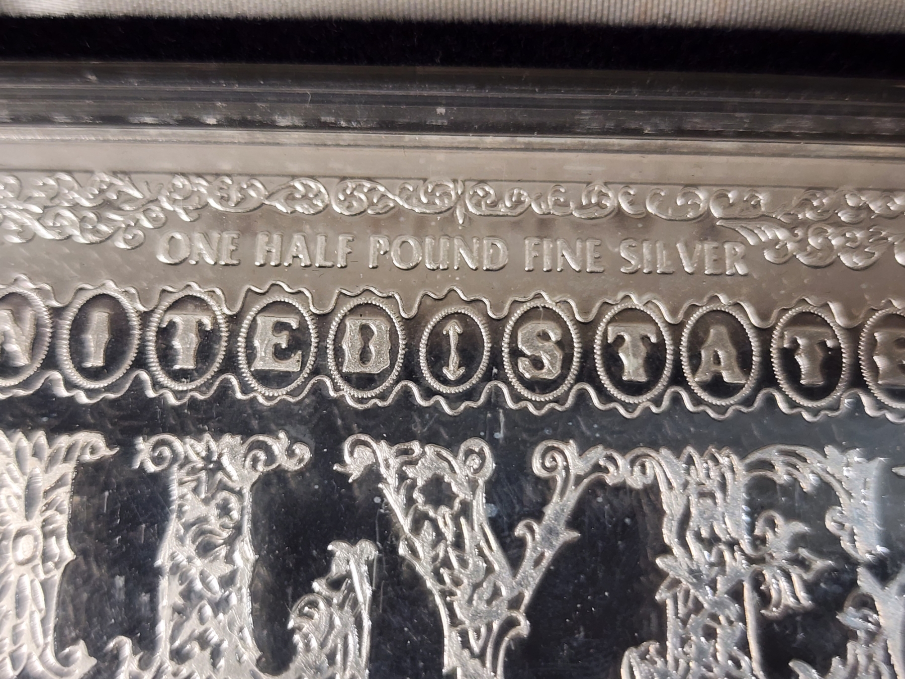 One Half Pound .999 Fine Silver $500 Silver Certificate Bar - Beautiful Artwork!