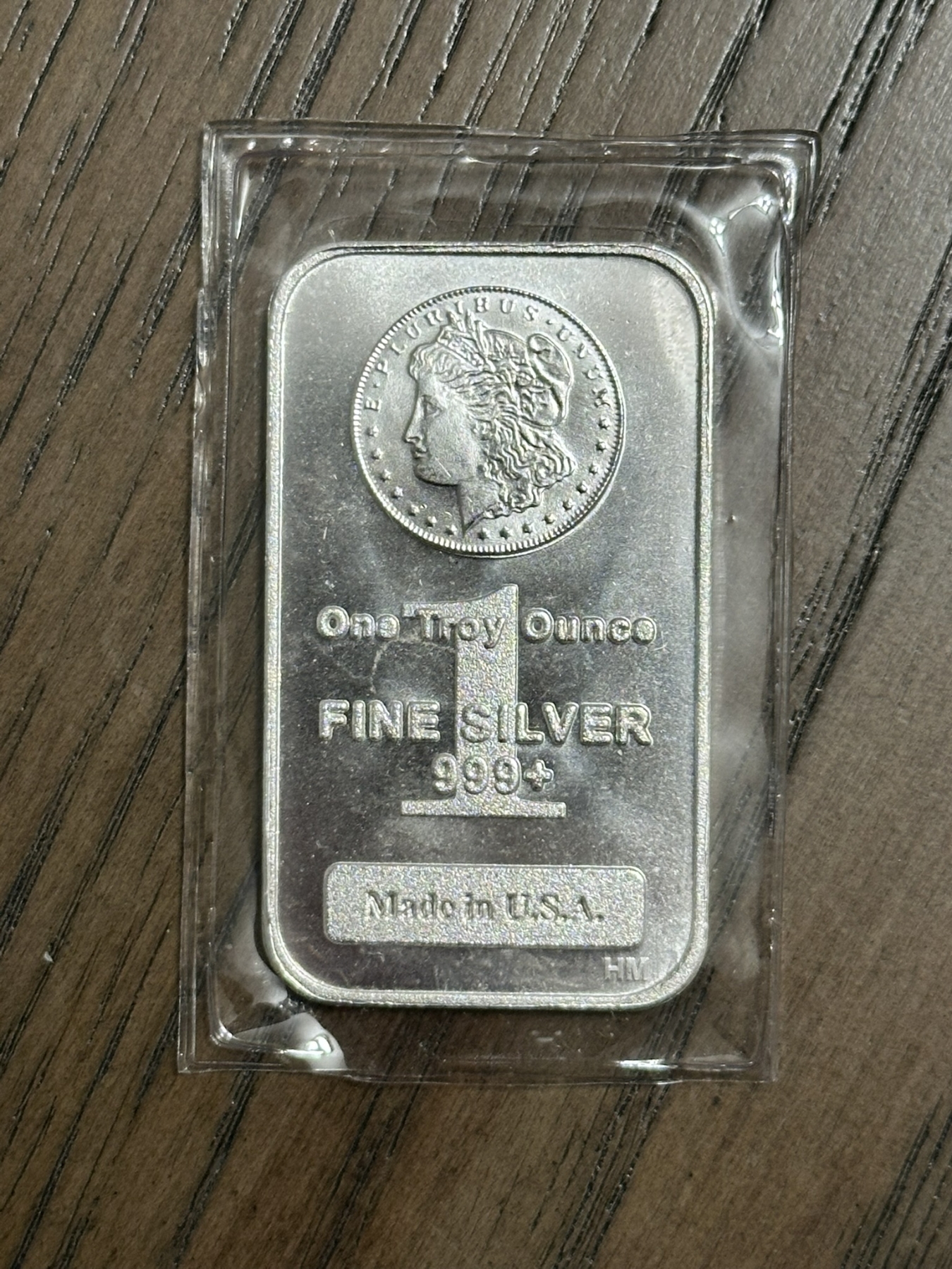 One Troy Ounce .999 Fine Silver Bar Featuring Morgan Dollar Design