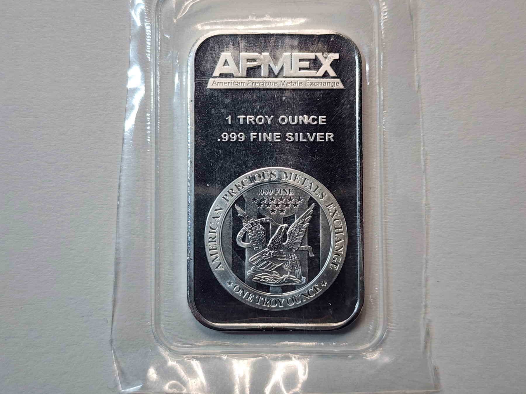 One Troy Ounce AMPEX .999 Fine Silver Bar Featuring American Eagle Design