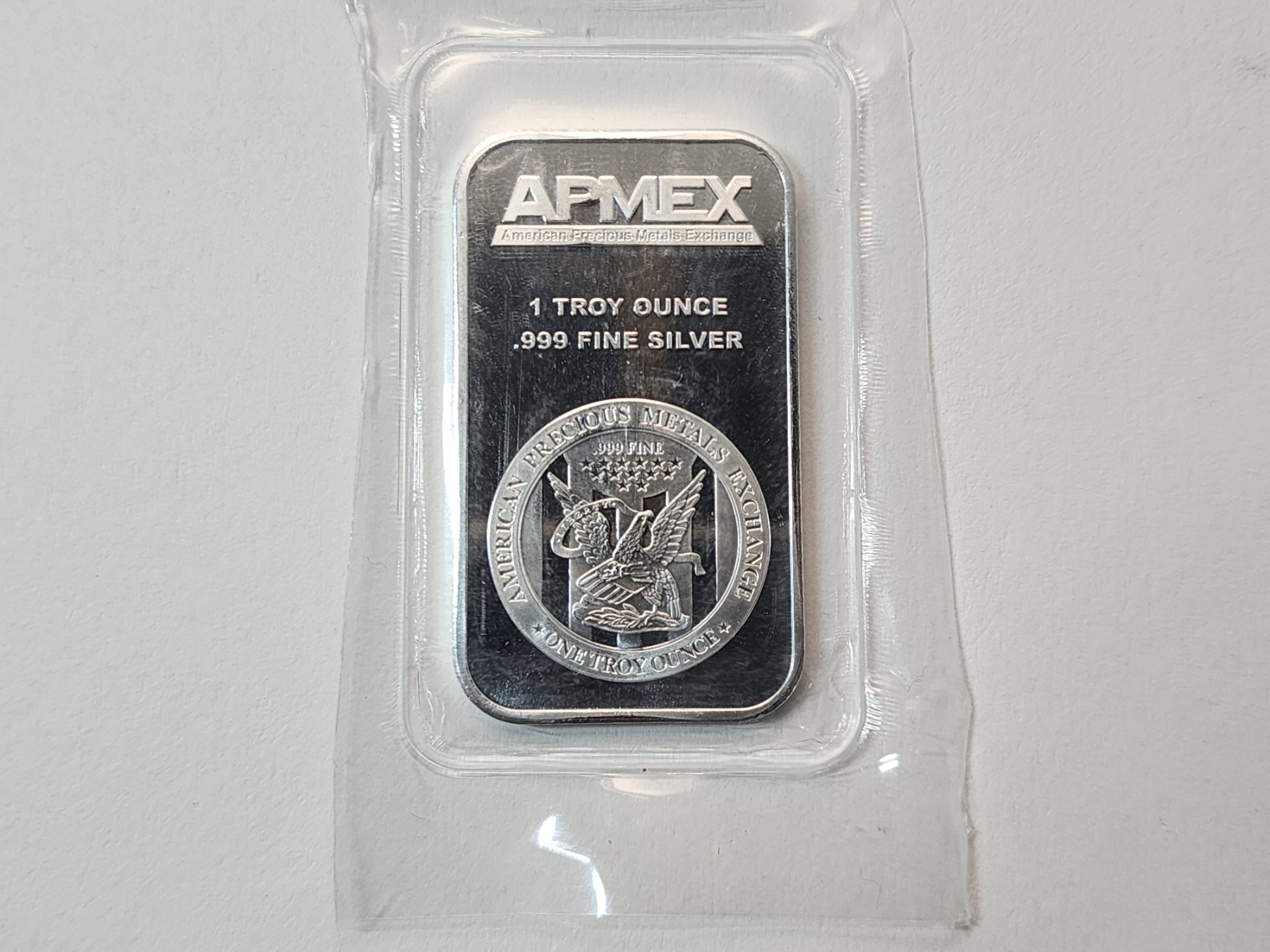 One Troy Ounce AMPEX .999 Fine Silver Bar Featuring American Eagle Design