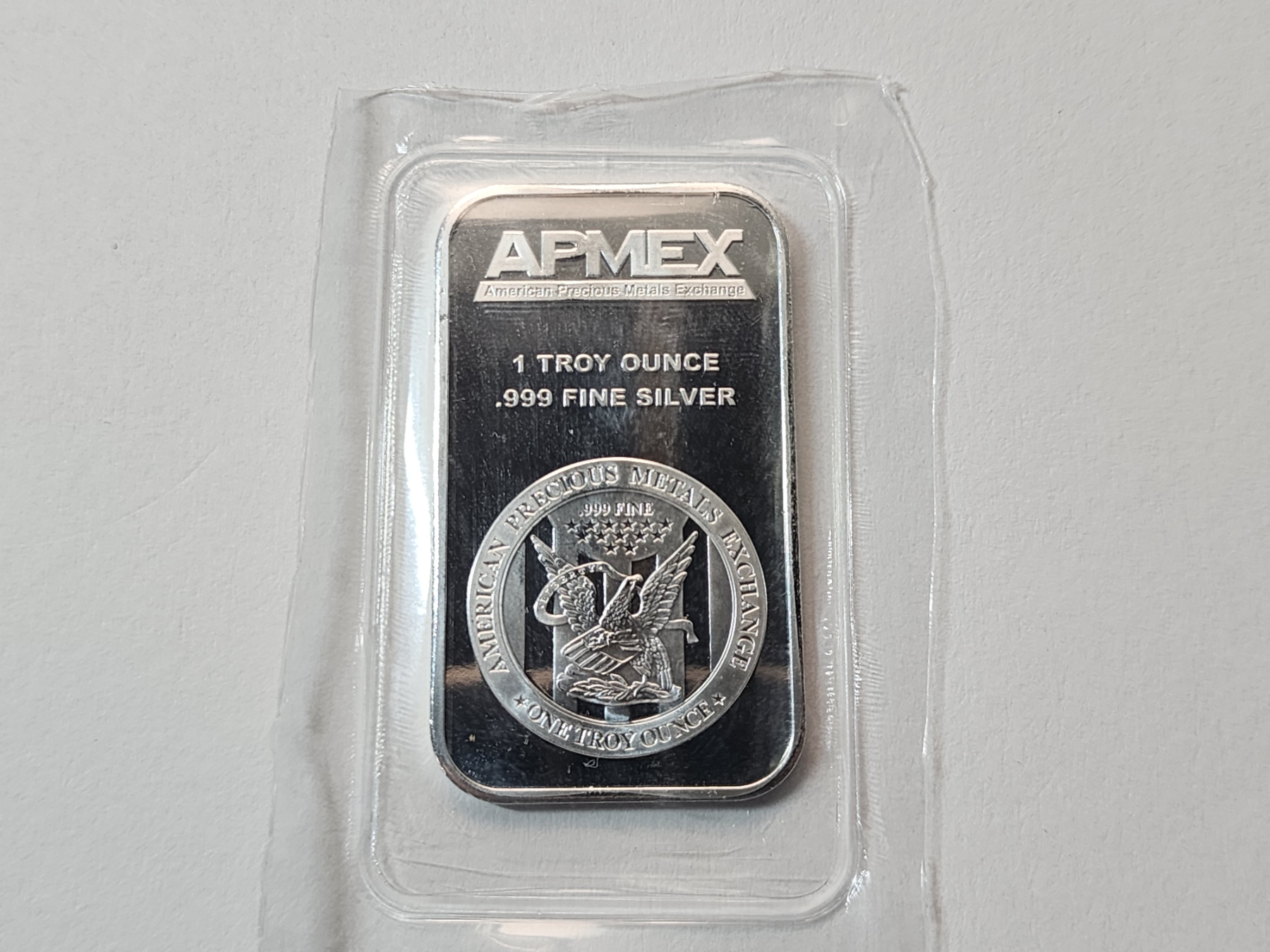 One Troy Ounce AMPEX .999 Fine Silver Bar Featuring American Eagle Design