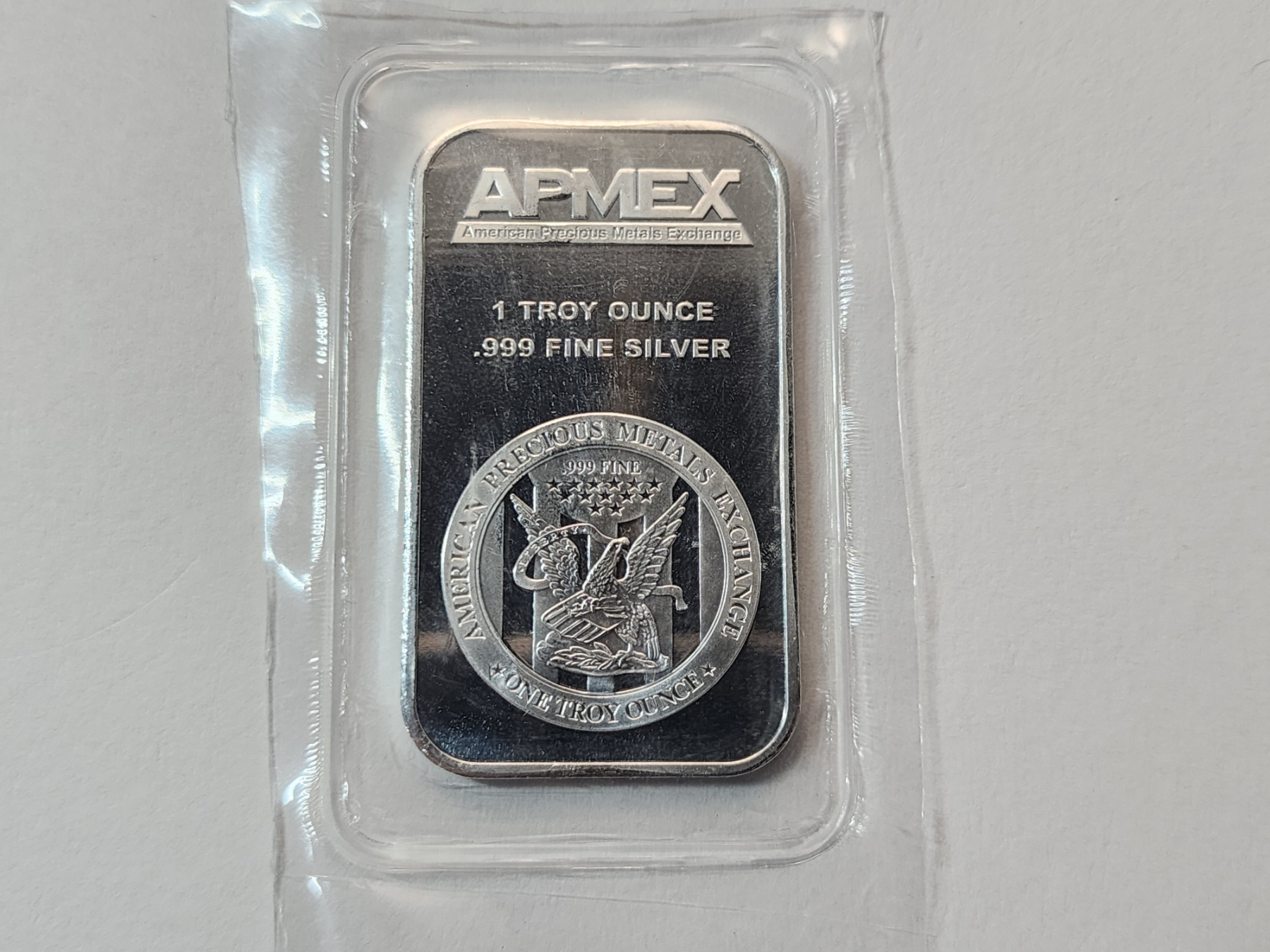 One Troy Ounce AMPEX .999 Fine Silver Bar Featuring American Eagle Design