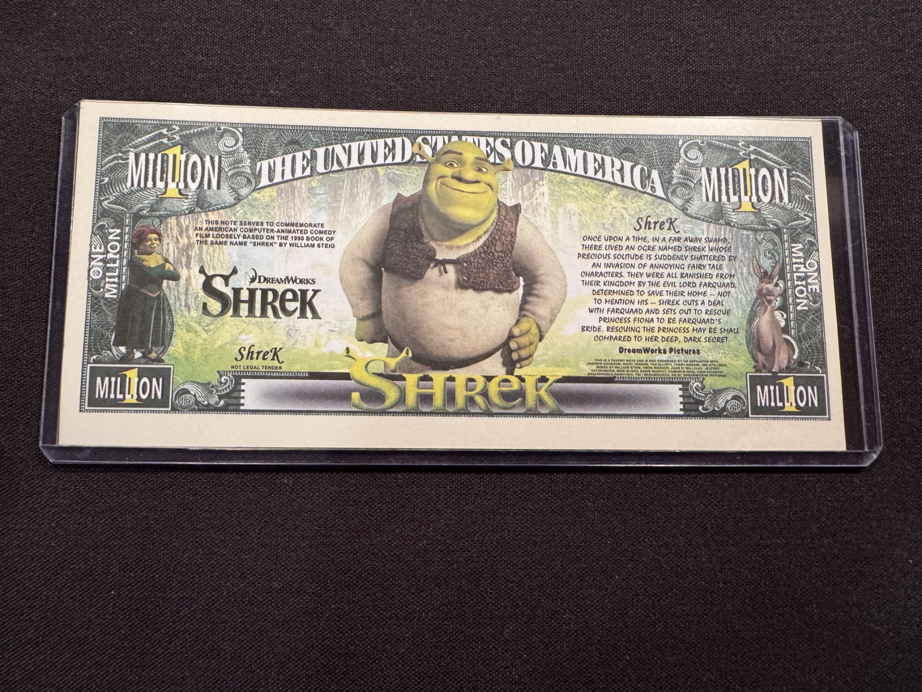 Original Shrek Dream Works One Million Dollar Bill In Protective Case - Mint Condition