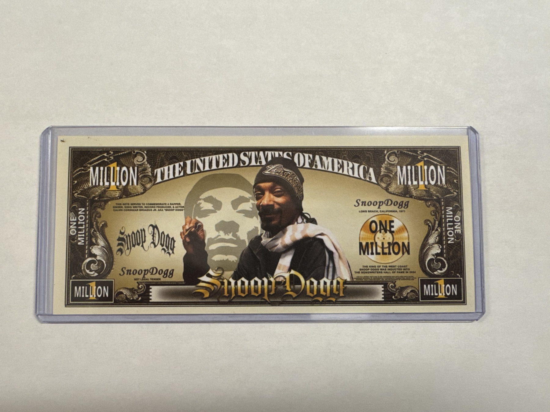 Original Snoop Dog One Million Dollar Bill - Mint In Protective Holder - Mint Condition