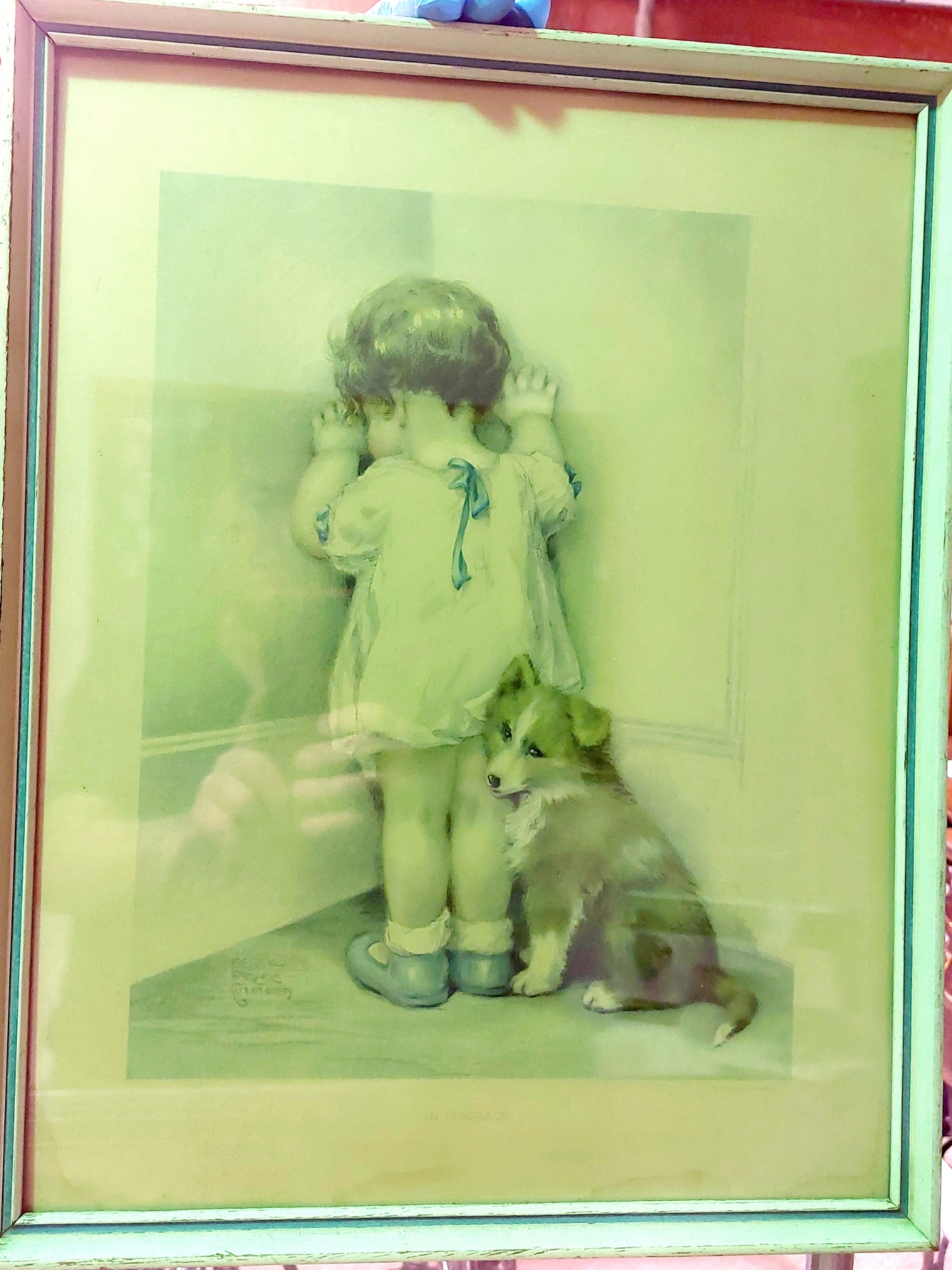 Original Vintage "Bessie Pease Gutmann" Hand Colored Pouting Girl With Puppy - 19" x 15" -