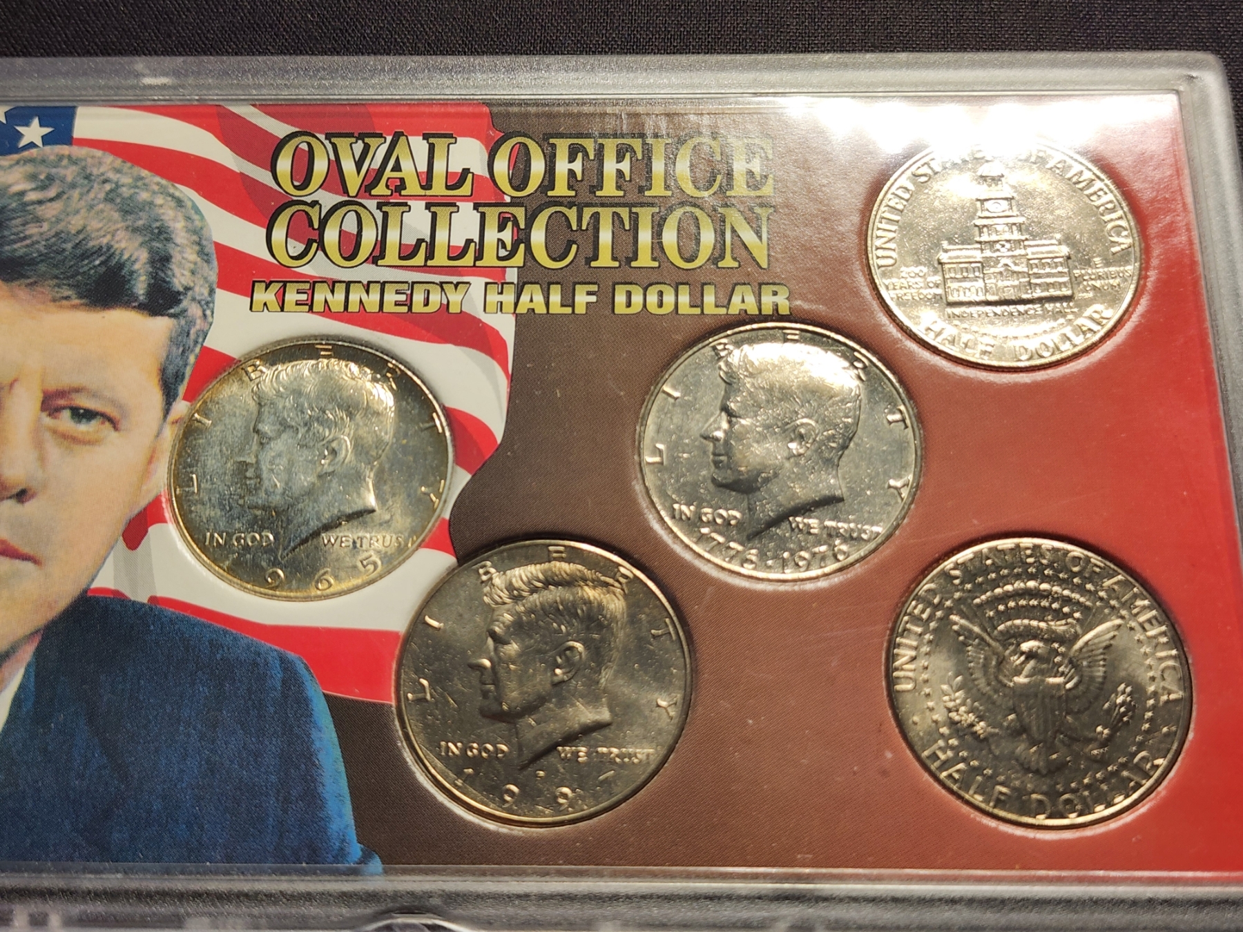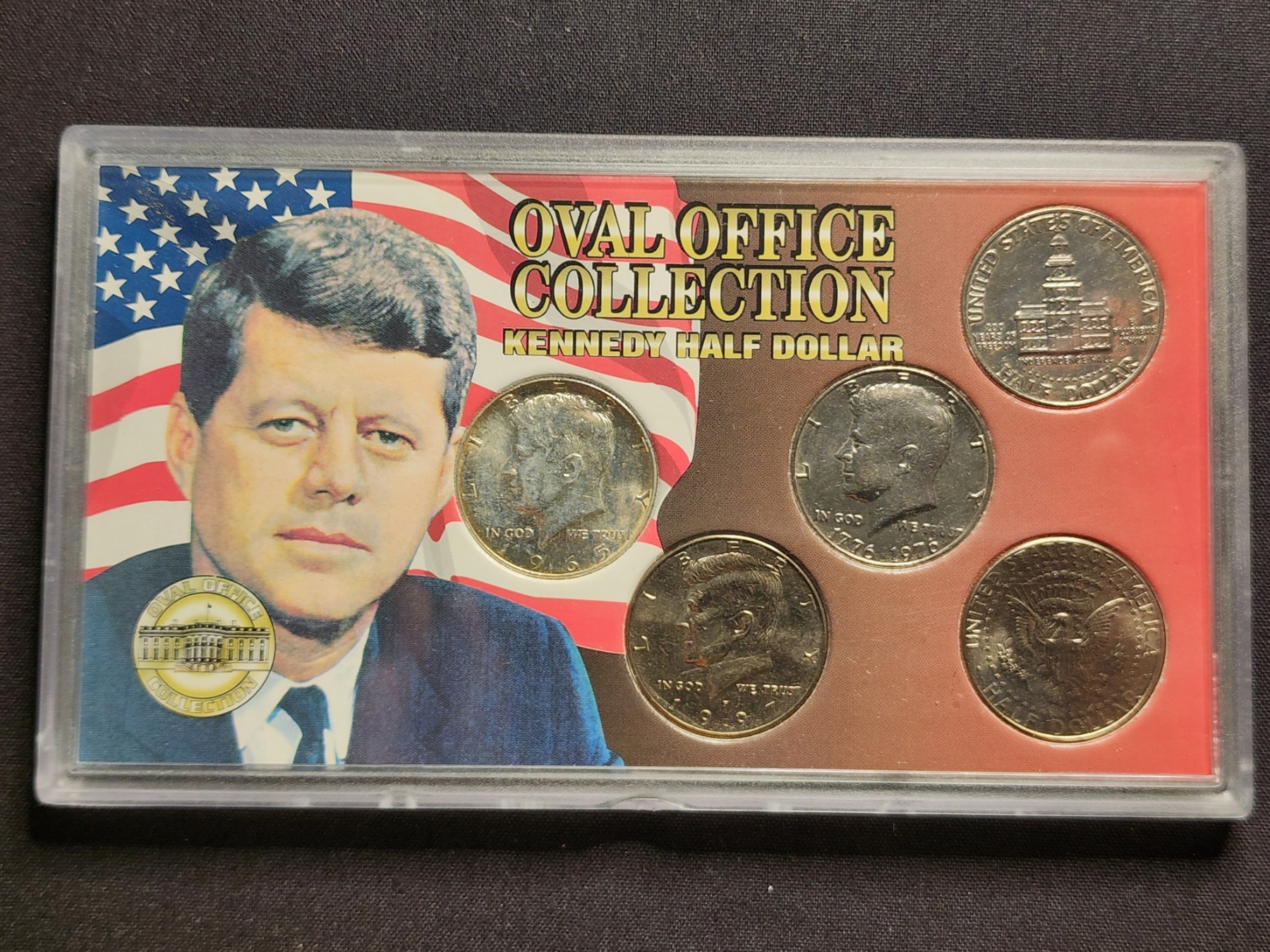 Oval Office Collection Kennedy Half Dollar Display Ft. 40% Silver Coin - $2.50 Face Value Altogether