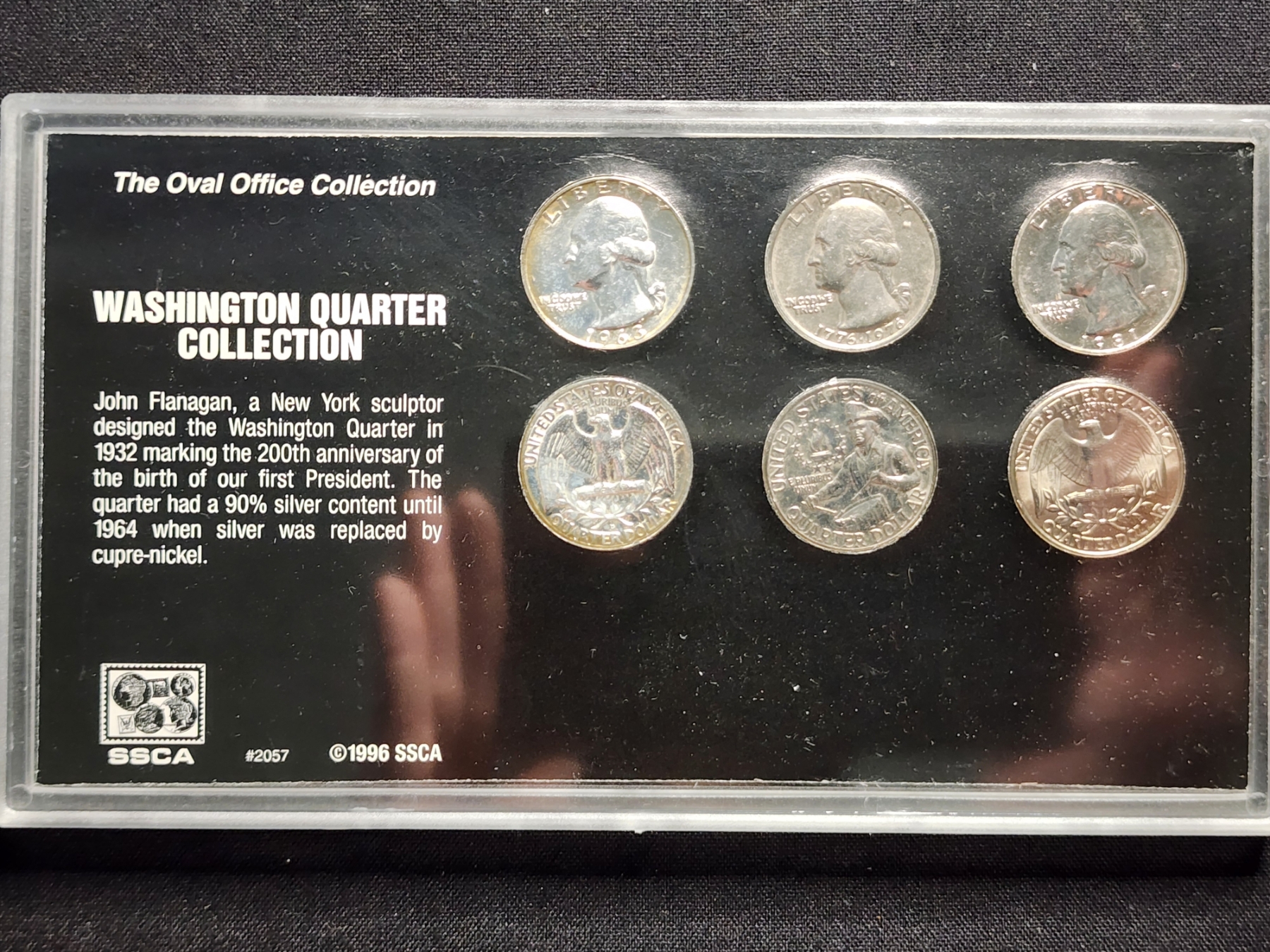 Oval Office Collection Washington Quarters Display Ft. $0.50 Face Value in 90% Silver Quarters