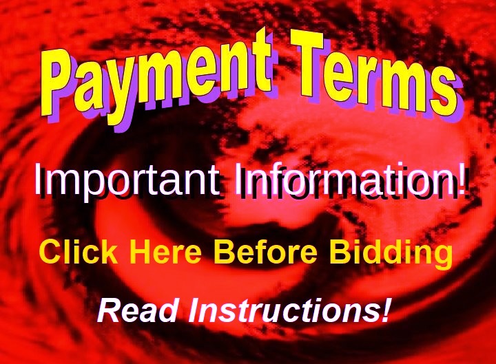 PAYMENT DETAILS! PLEASE DO NOT BID ON THIS LOT! PAYMENT DETAILS ONLY - Visa, Mastercard, Discover, Check, ACH & Wire Transfer Accepted. Cash accepted only for local, non shipment, purchases. 15% Buyer's Premium on ALL sales and 6.5% sales tax on any APPLICABLE sales. Payment will be charged automatically the day after the auction closes by the approved payment method in the bidders file.... OR, Can be made directly at our location in Louisville, OH., if other method is desired. Call if special arrangements are to be made.