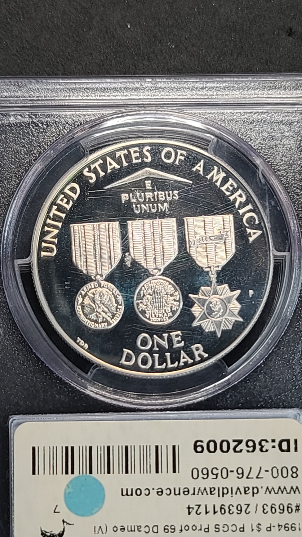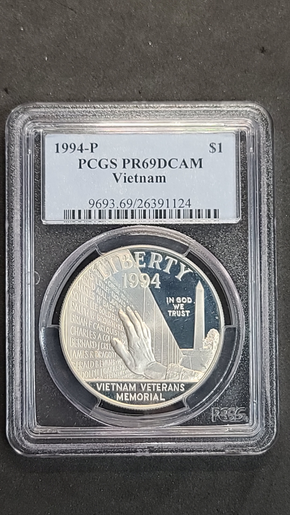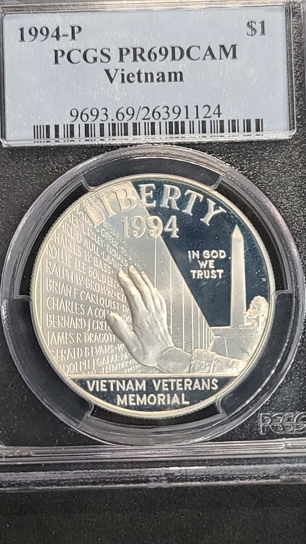 PCGS 1994-P PR69DCAM Vietnam Veterans Memorial Commemorative 90% Silver Proof Dollar