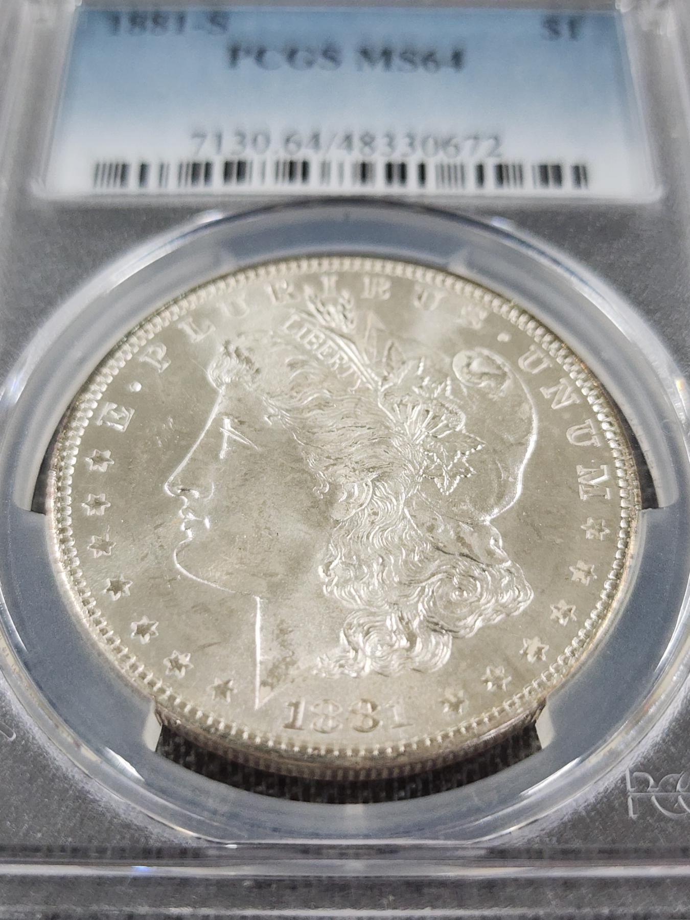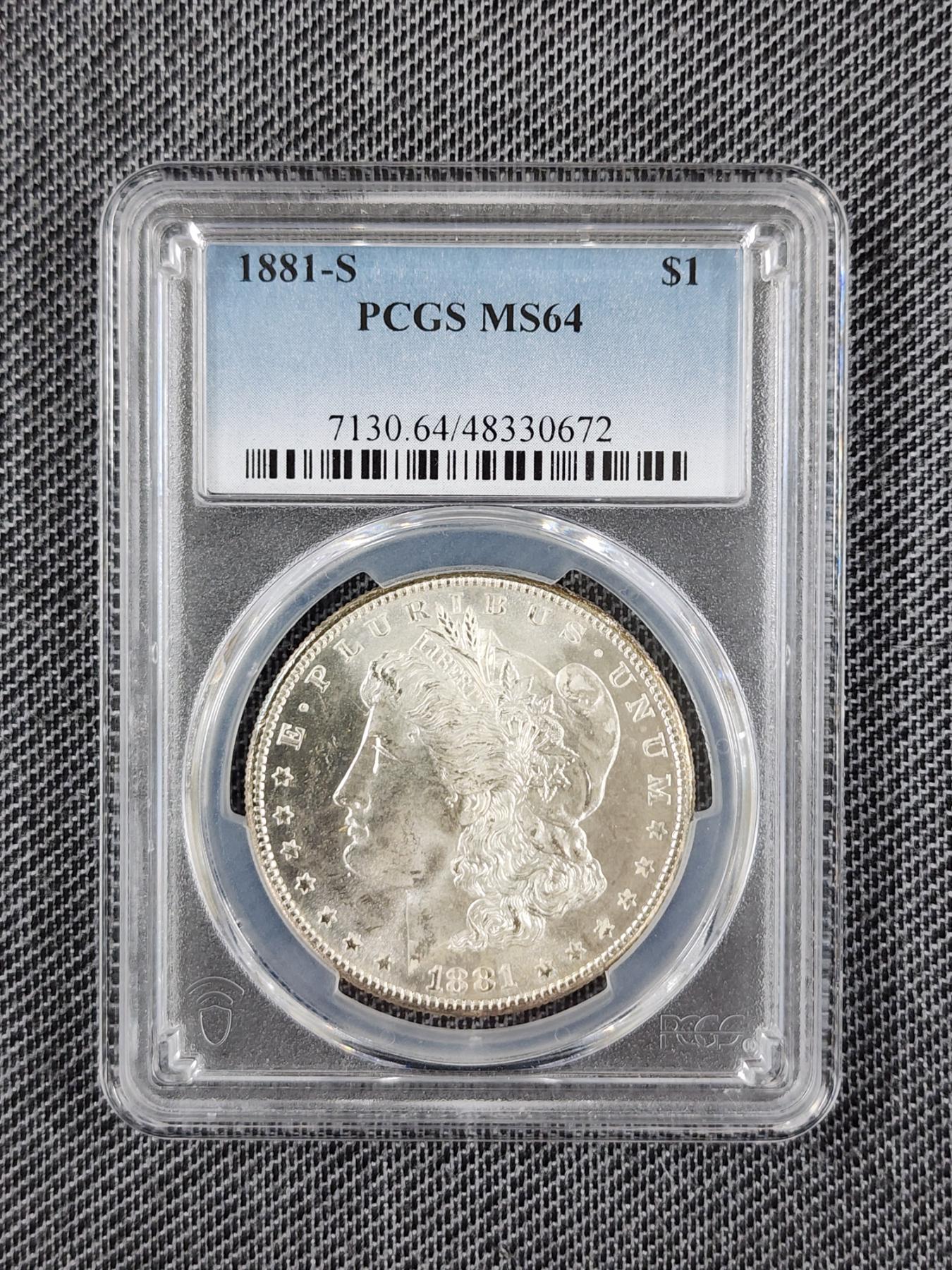 PCGS MS64 1881-S Morgan Silver Dollar - 90% Silver Dollar Graded by PCGS!