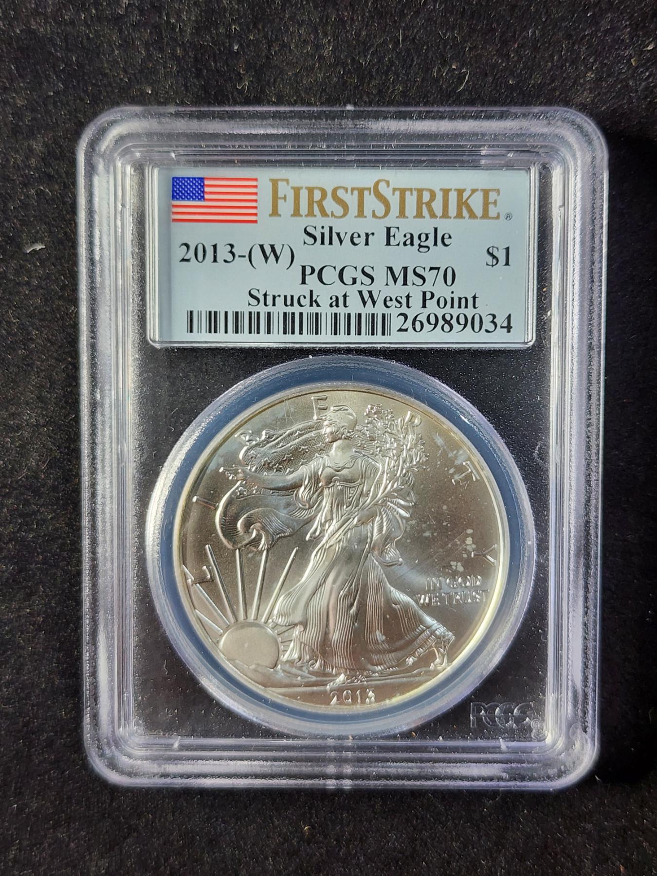 PCGS MS70 2013-W 1 Oz Silver American Eagle - Struck at West Point Mint
