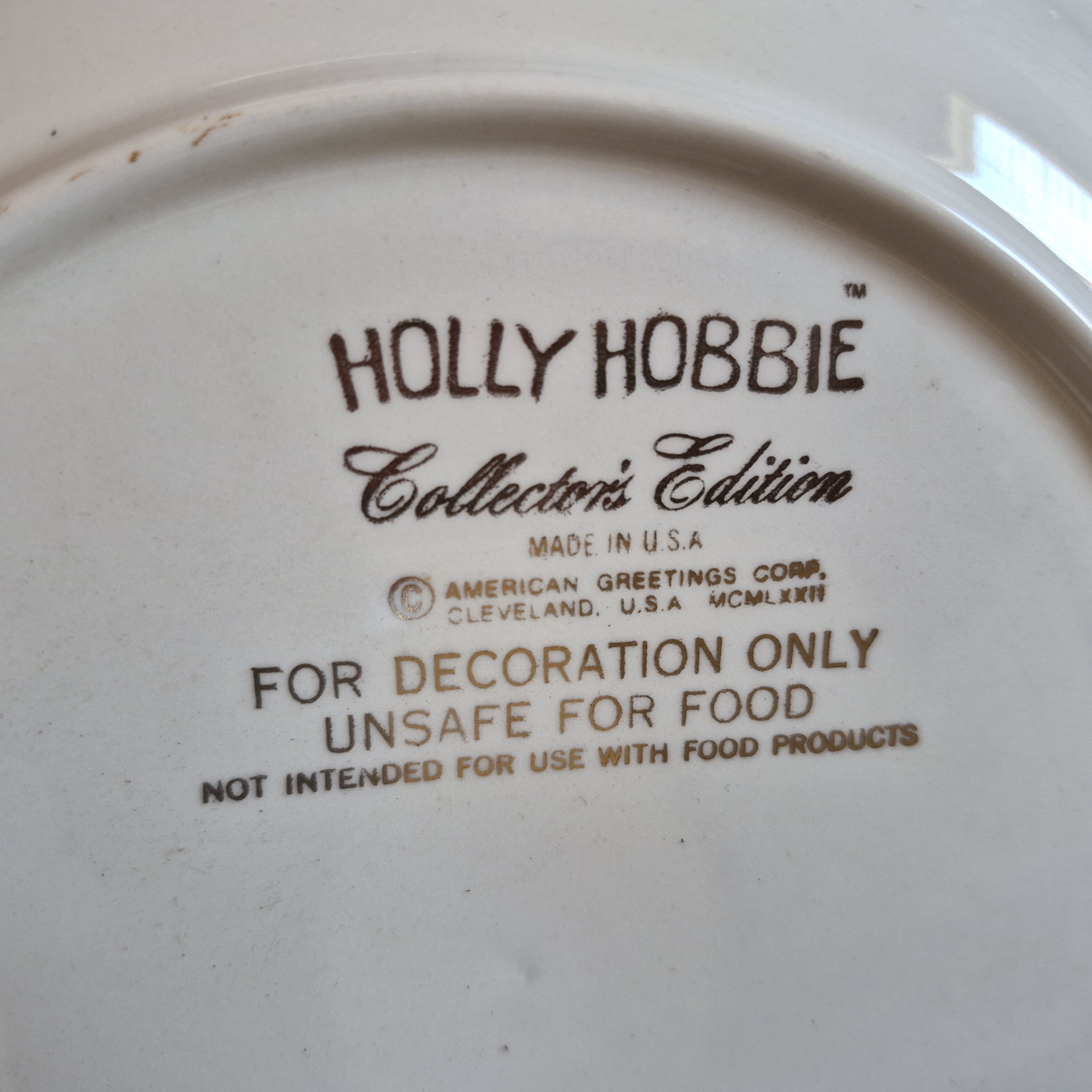 PICKUP IN CANTON - 3 Pc- Two Collectible Holly Hobbie Plates & Special Artist signed Piece - Details