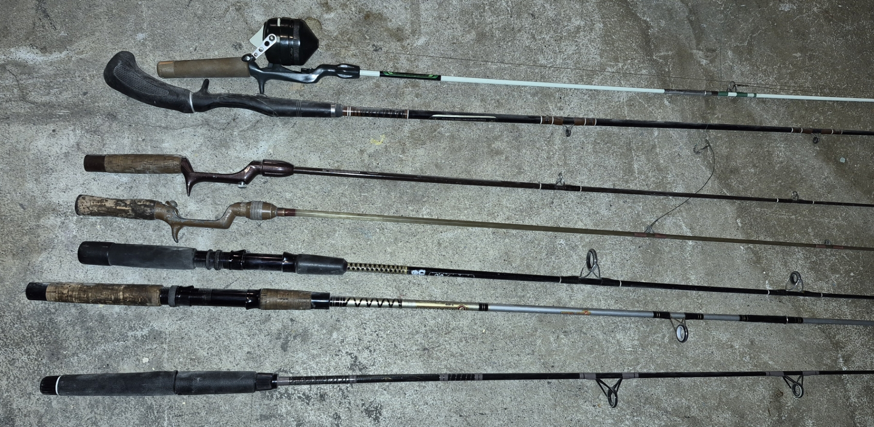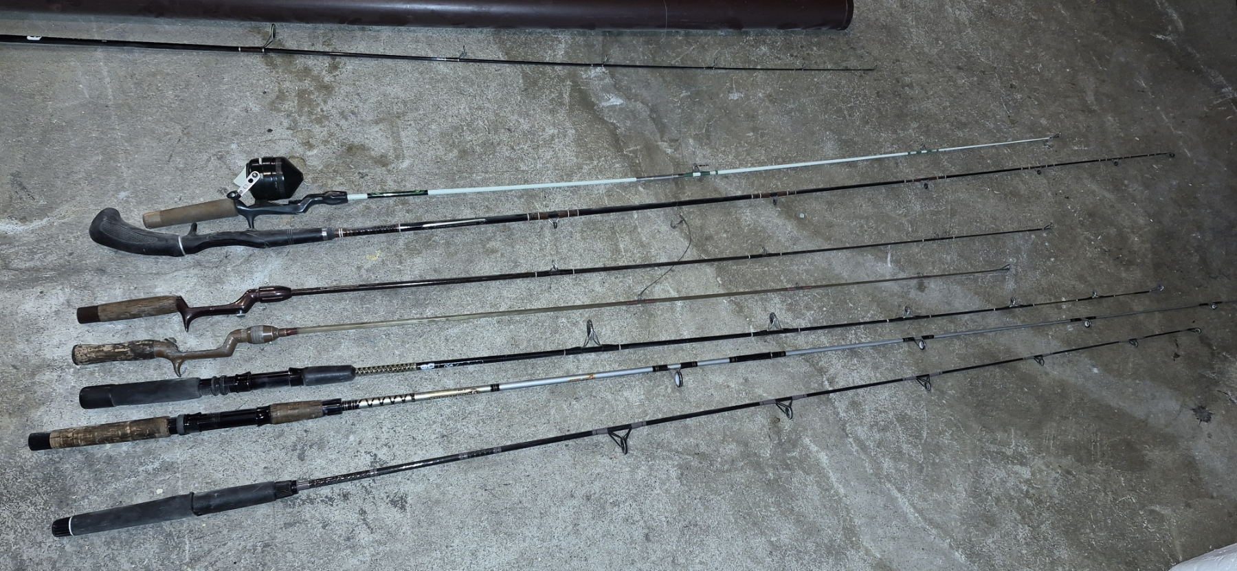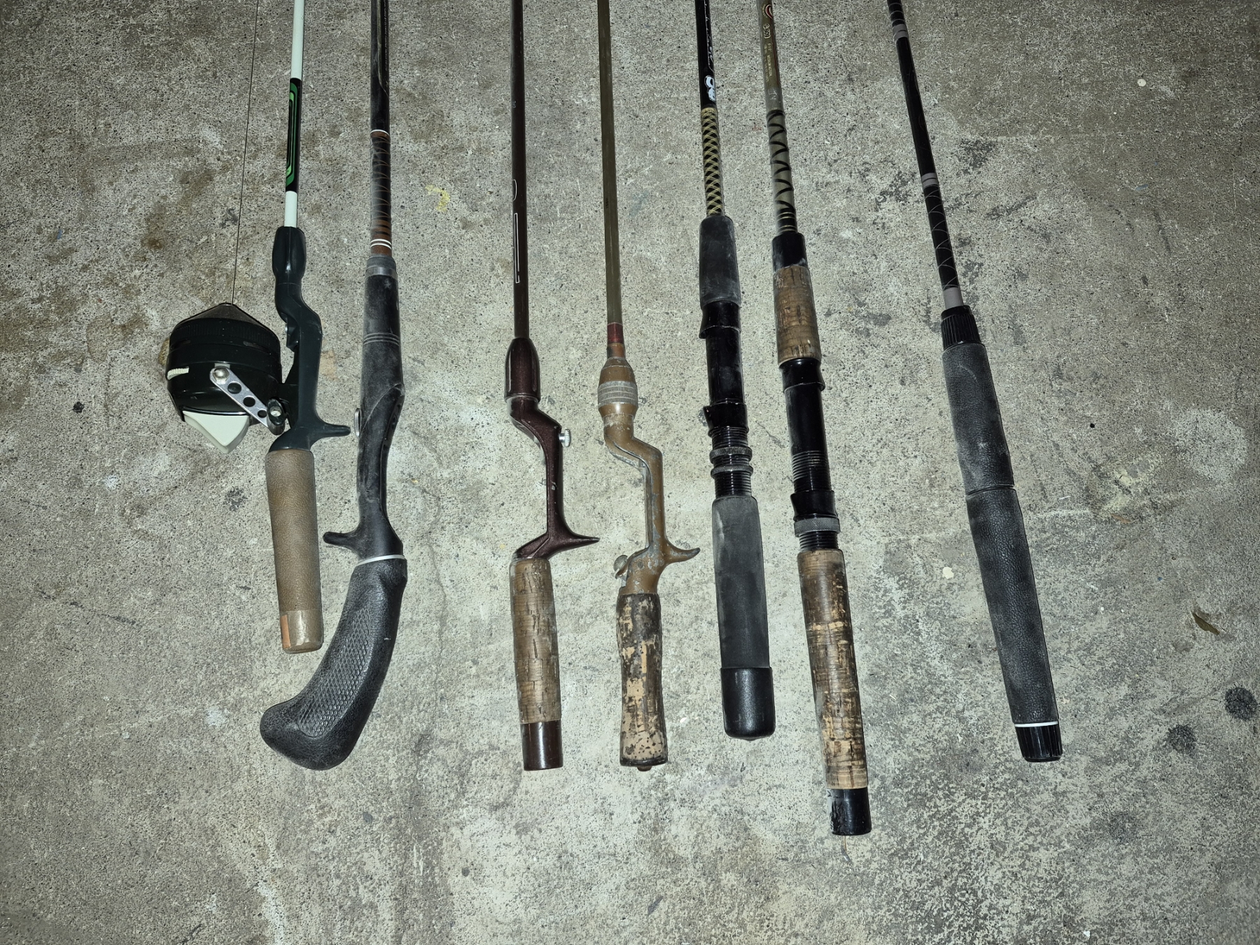 PICKUP IN CANTON - AS SEEN IN PICTURES LOT OF 7 FISHING RODS - Multi -Variety fishing Rods In This Lot - One includes Spin Cast Reel - See PIcs