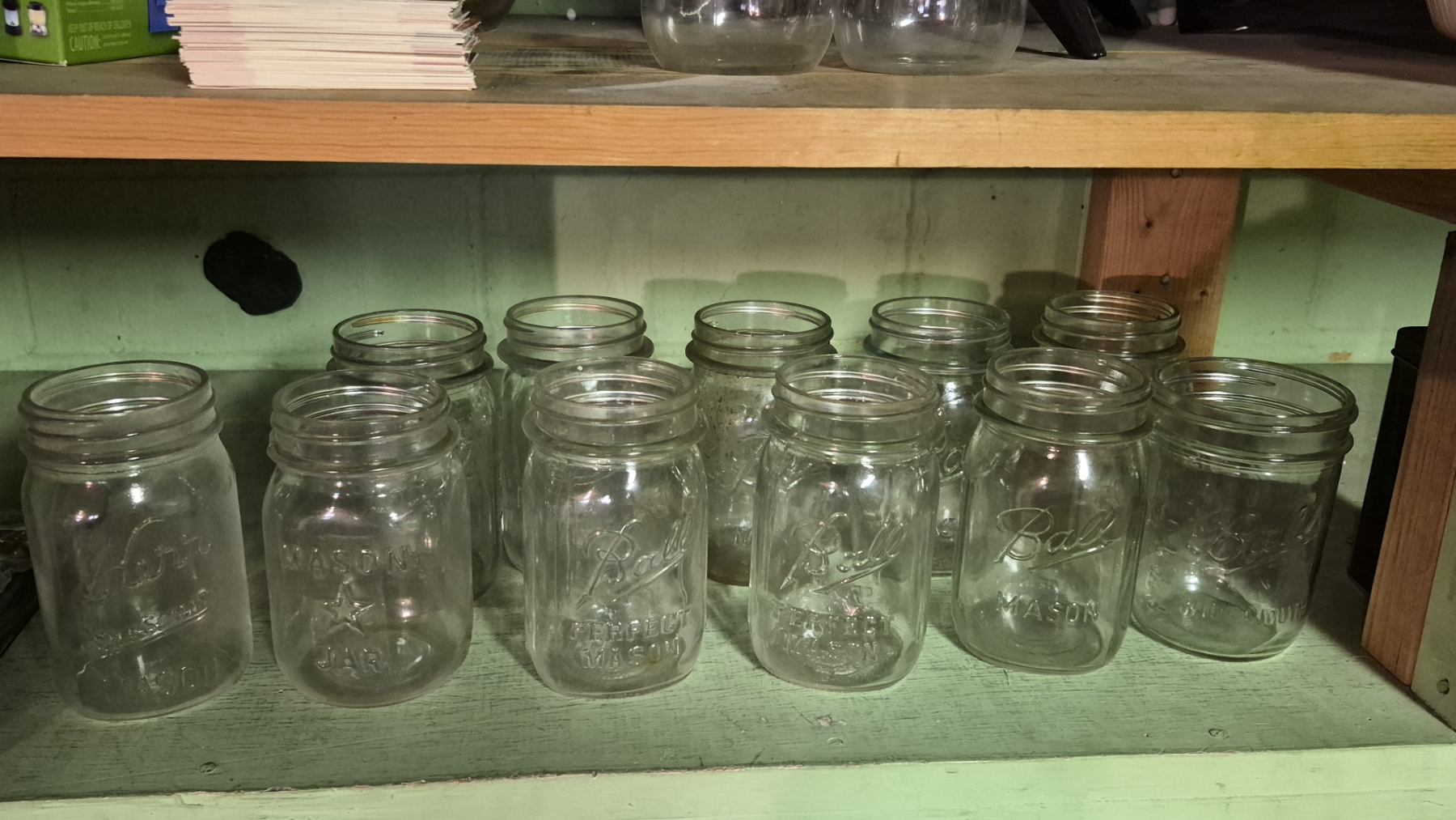 PICKUP IN CANTON - BALL MASON JARS - PINT SIZE - 10 QTY PLUS 1 KERR - SEE PICS