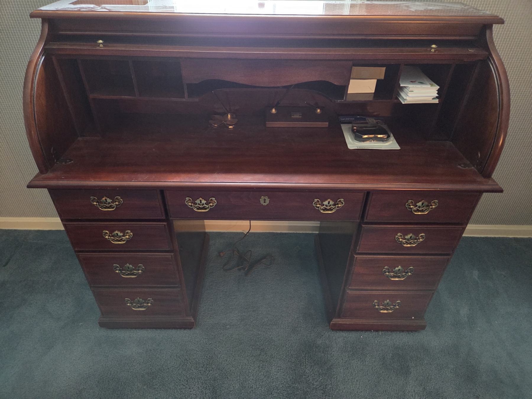 PICKUP IN CANTON - Beautiful Excellent Condition 52'' Wide, 22'' Deep & 45'' Tall Roll Top Cherry Desk
