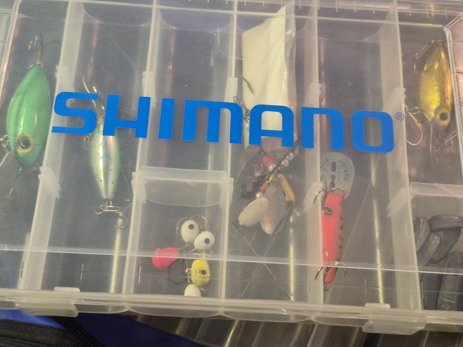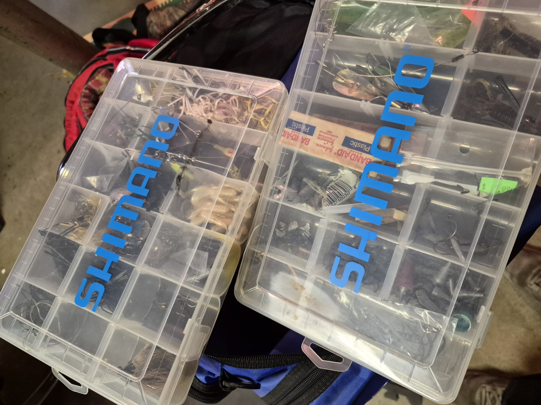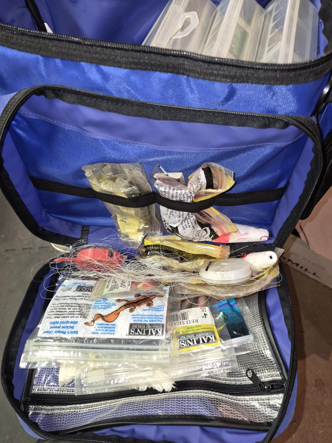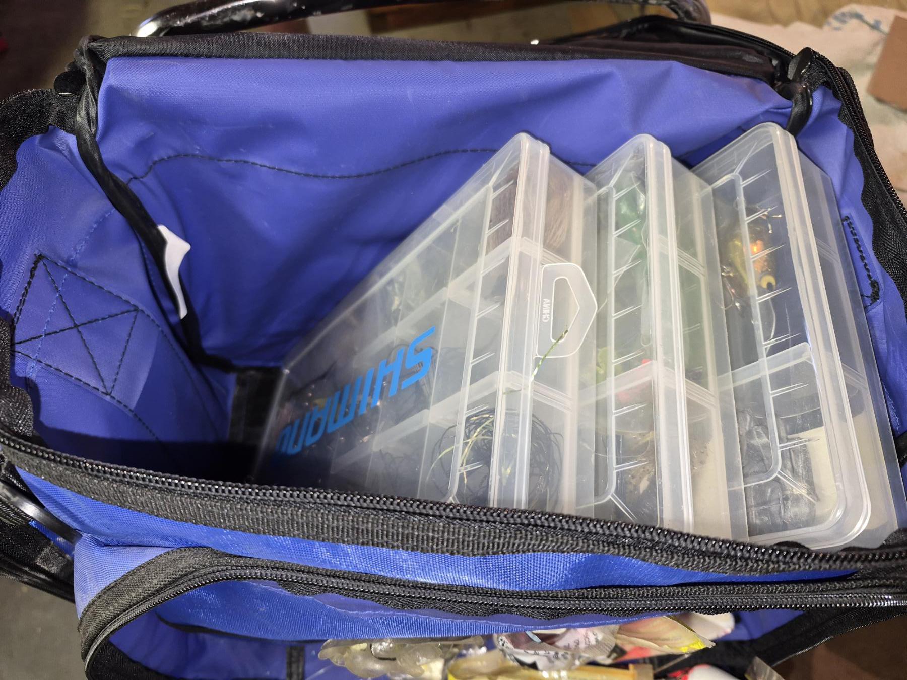 PICKUP IN CANTON - Blue SHIMANO Fishing Pack With All Contents Shown - Nice Lot Of Lures & More