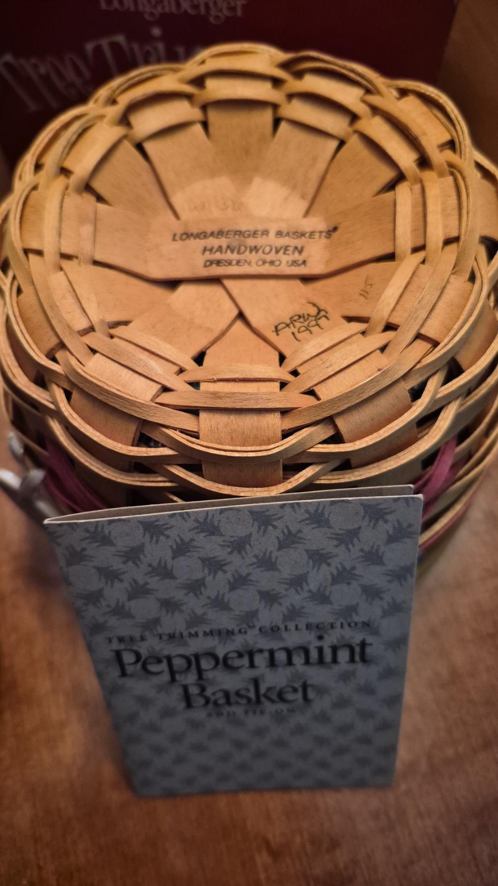PICKUP IN CANTON - CHRISTMAS LONGABERGER PEPPERMINT BASKET & 2 SPECIAL CANDLE HOLDERS