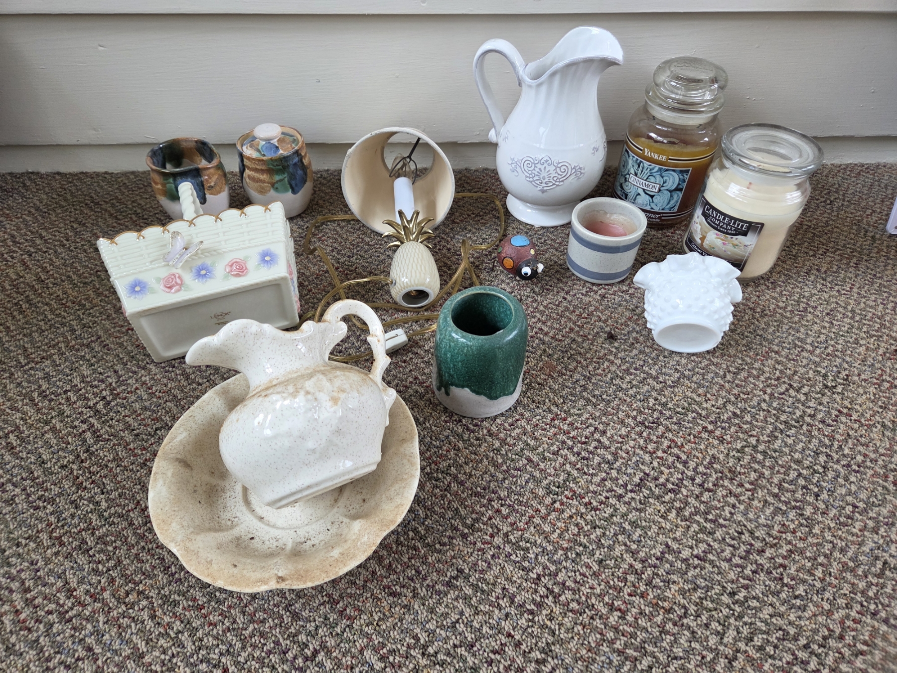 PICKUP IN CANTON - Candles And Decor Including Small Lamp, Pitchers, Dishes & More